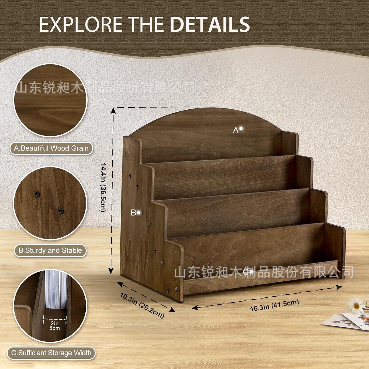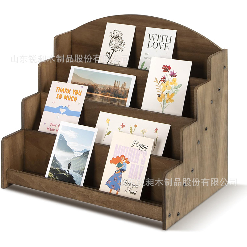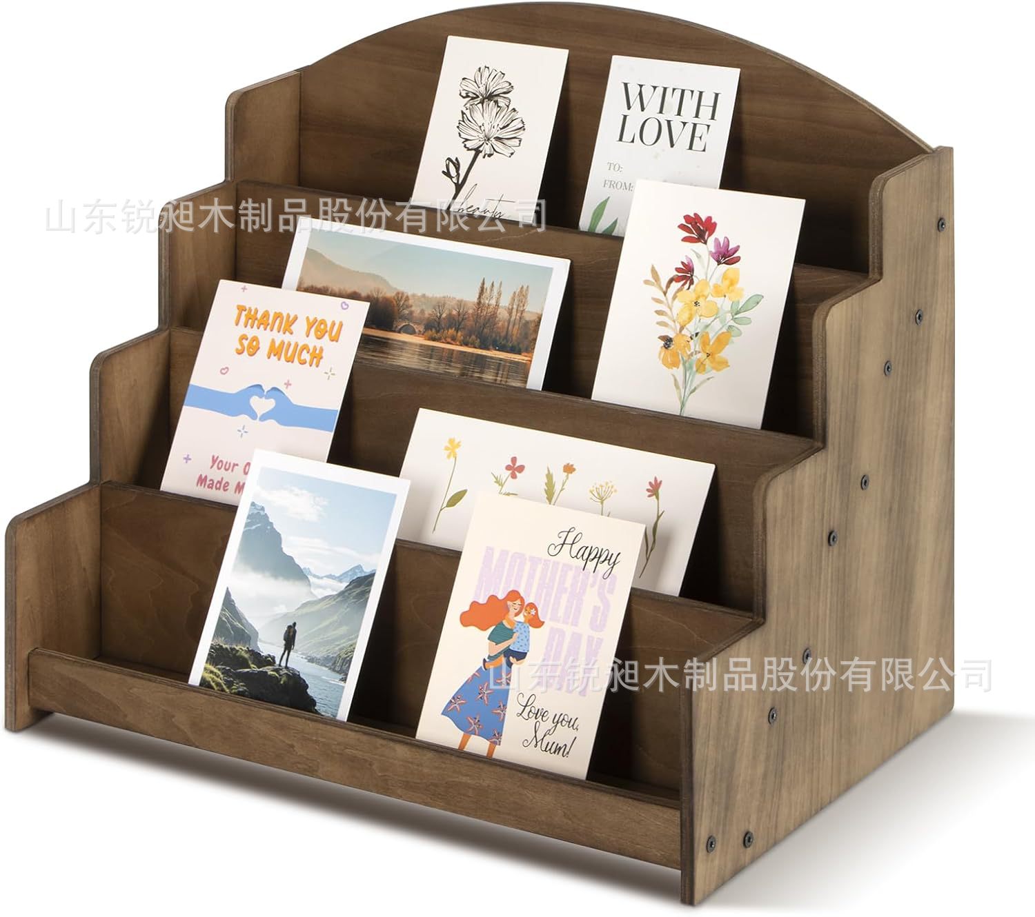 국경 간 사다리형 수납 선반 나무 인사말 카드 수납 선반 엽서 디스플레이 선반 데스크탑 스티커 그림책 디스플레이 선반스토어 가기