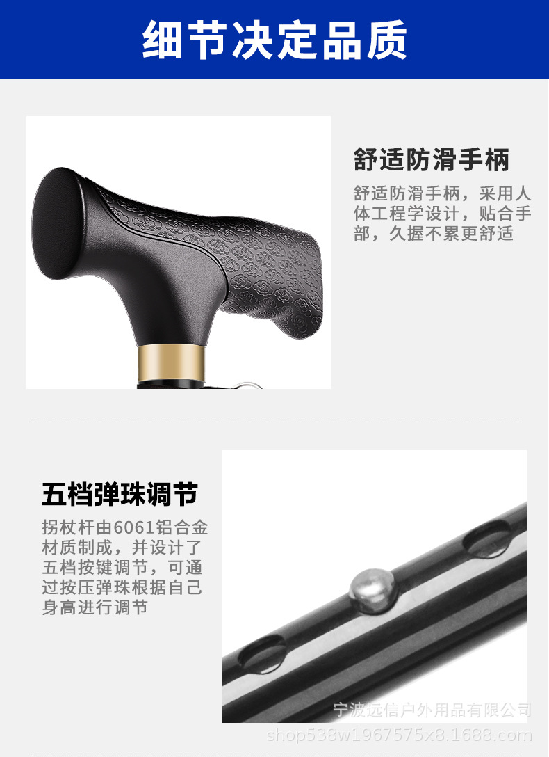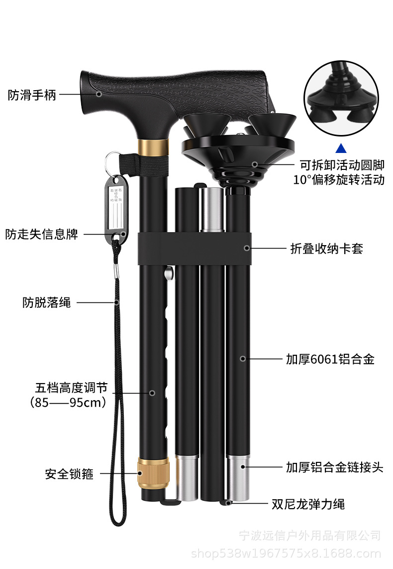 노인을 위한 알루미늄 합금 지팡이, 샹윈 고무 처리된 단일 발 회전 4발 이중 목적 지팡이, 접이식, 텔레스코픽 및 휴대 가능스토어 가기