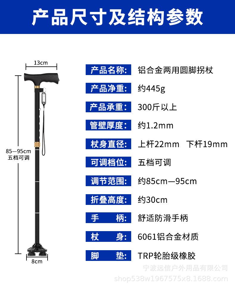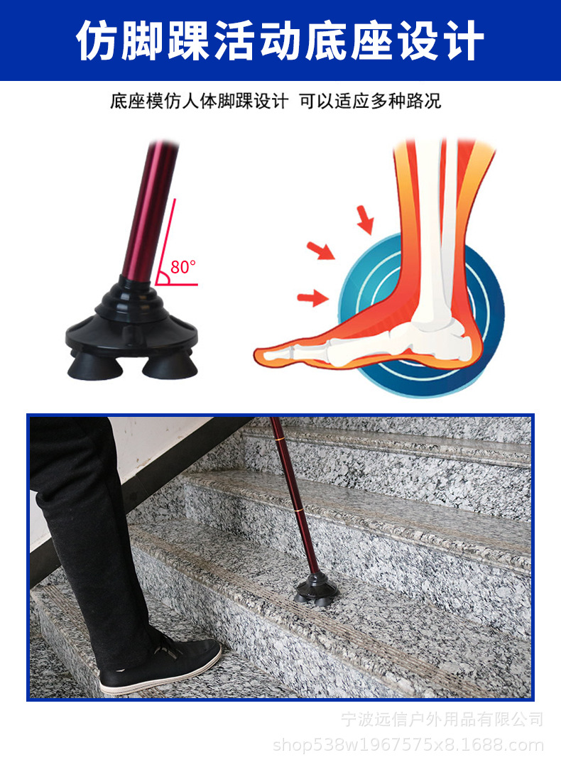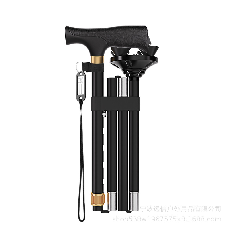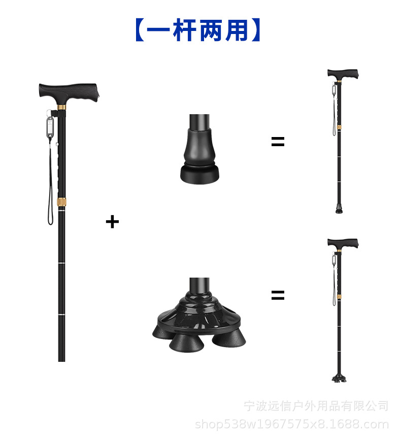 노인을 위한 알루미늄 합금 지팡이, 샹윈 고무 처리된 단일 발 회전 4발 이중 목적 지팡이, 접이식, 텔레스코픽 및 휴대 가능