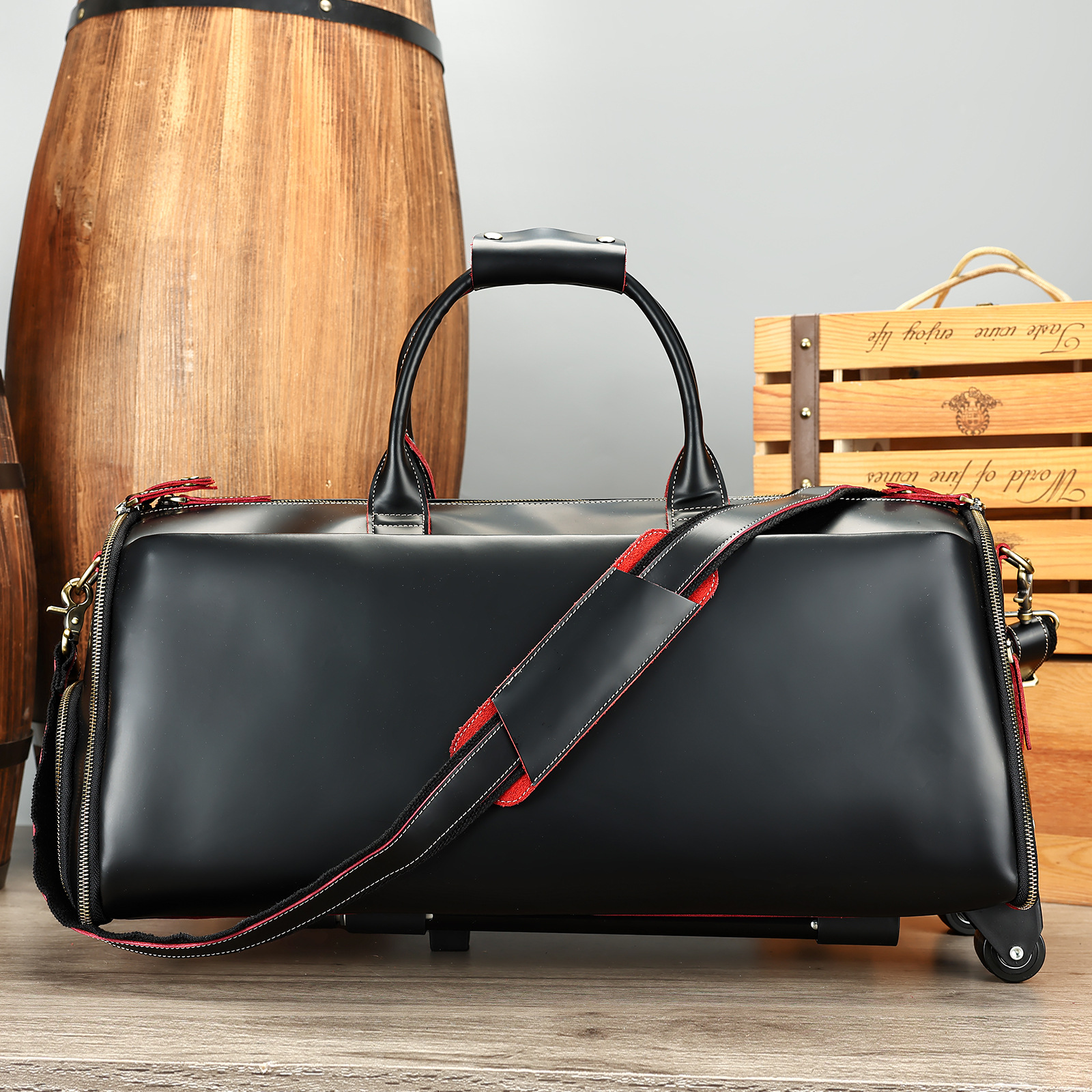 NIUCUNZH 정품 가죽 정장 핸드백 1층 소가죽 대용량 비즈니스 여행 트롤리 여행 가방 크로스 바디 백