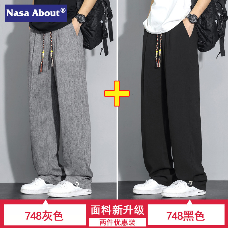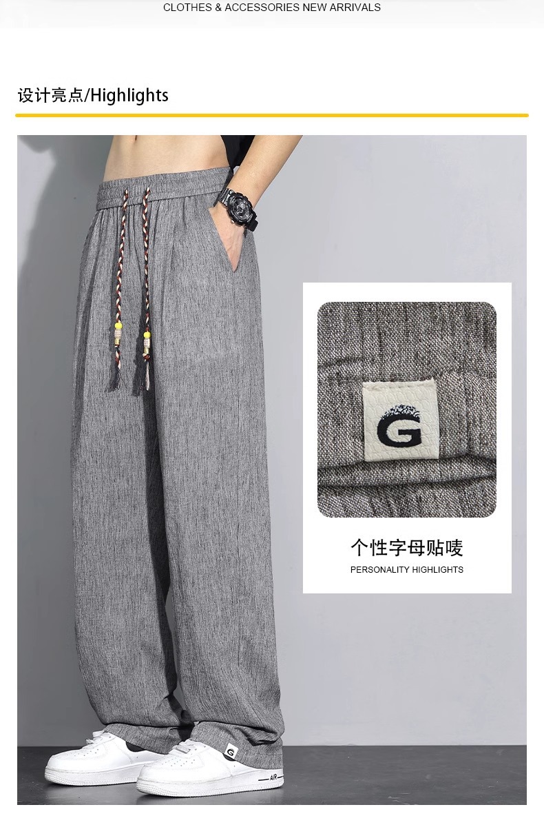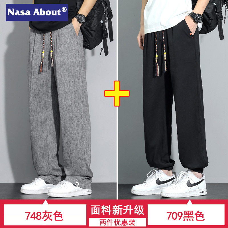 NASA 남성용 여름면 및 리넨 바지 얇은 2025 새로운 느슨한 편안한 직선 통기성 리넨 캐주얼 바지