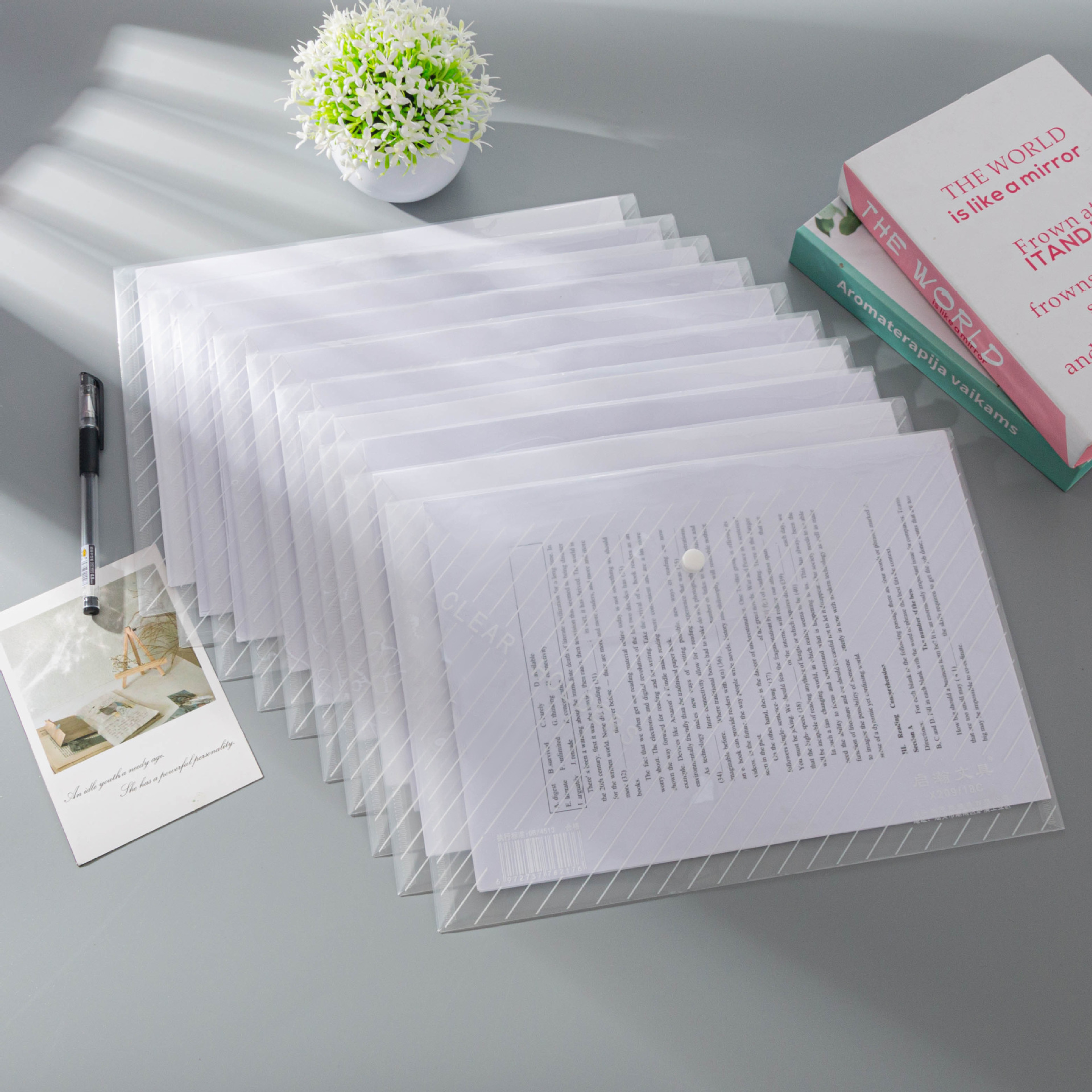 A4 파일 가방 보관 가방 파일 가방 흰색 두꺼운 버튼 가방 시험지 가방 투명 파일 가방 대용량 데이터스토어 가기