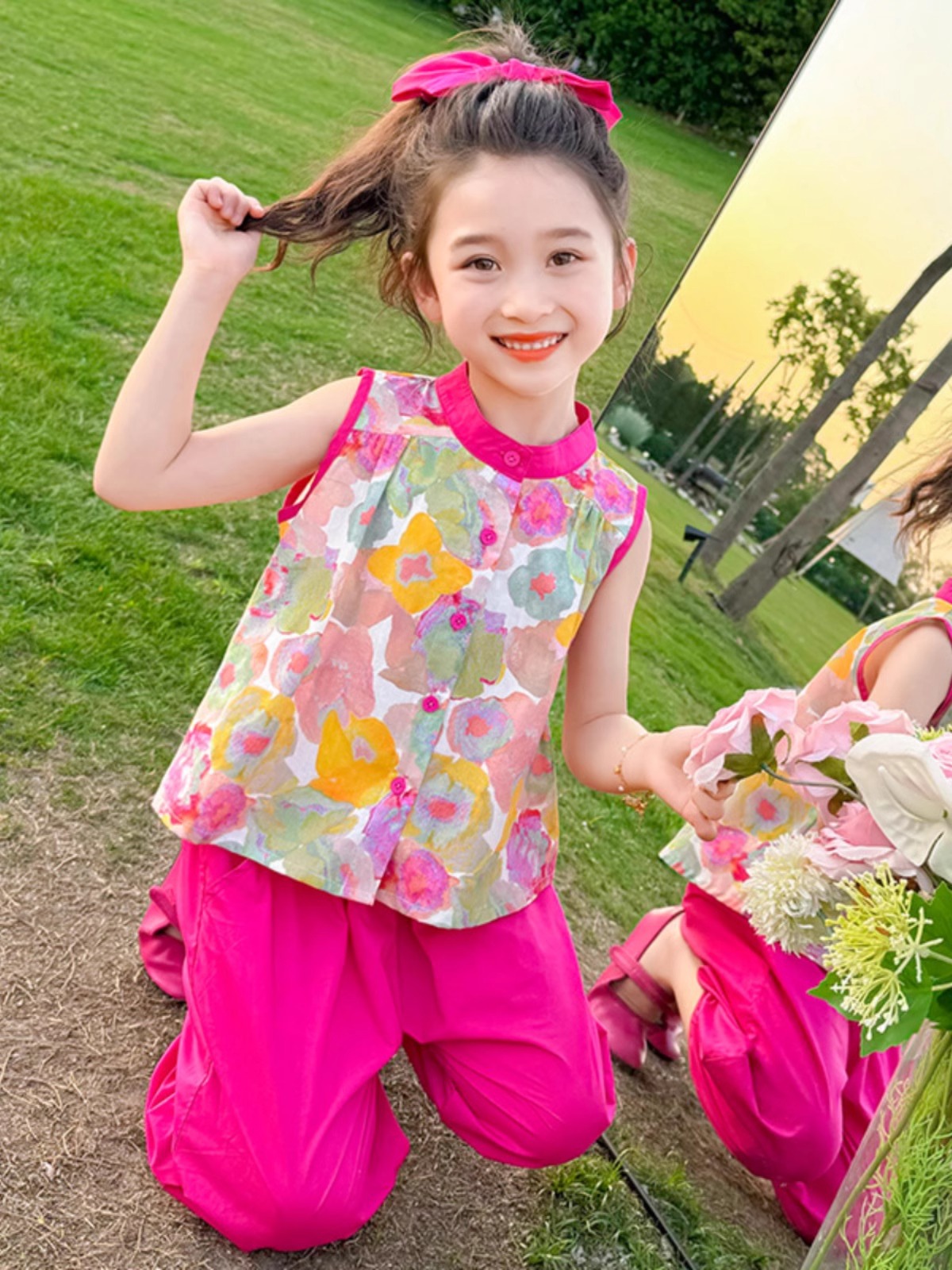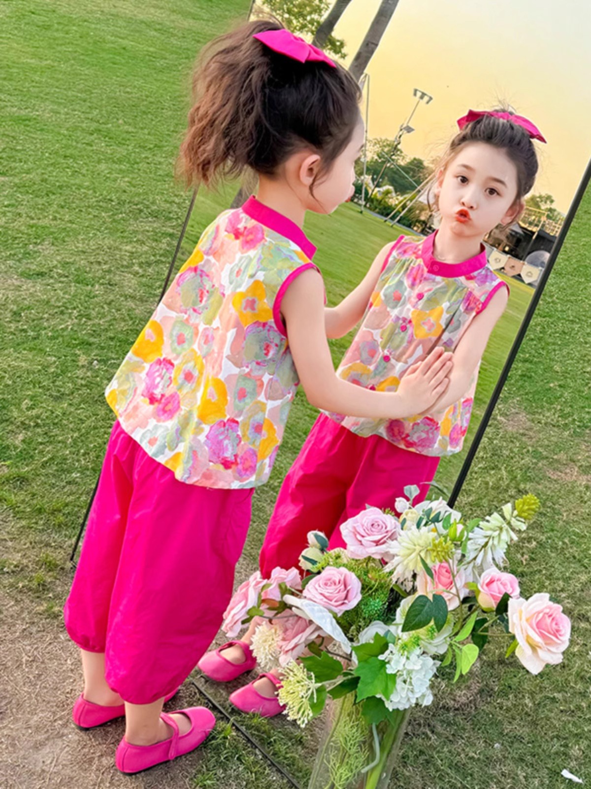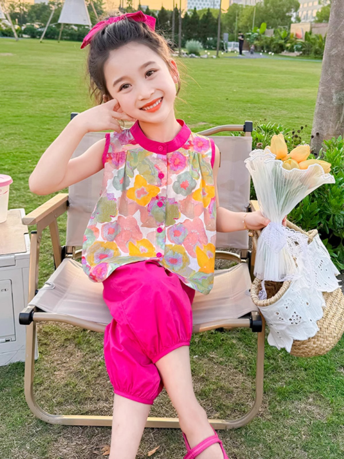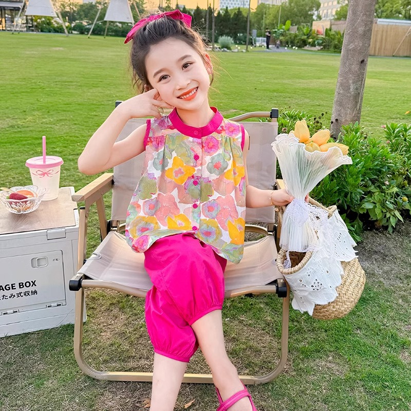 여자 여름 민소매 조끼 정장 2025 새로운 아기 스타일 레깅스 여름 투피스 세트 한국 아동복스토어 가기