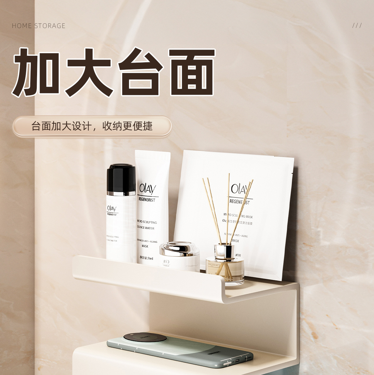 • [베스트셀러 기본모델] 크림화이트 - 펌프/롤 겸용 티슈박스 - 3단 칸막이 수납