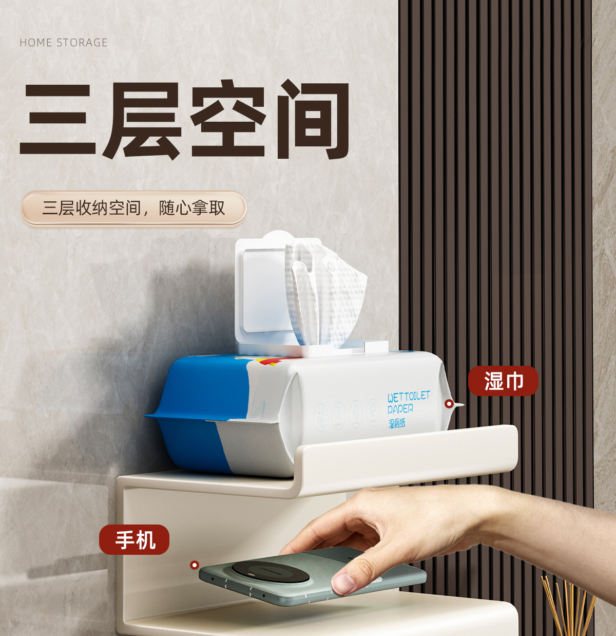 욕실 티슈 상자 펀치없는 화장지 홀더 욕실 티슈 상자 휴대 전화 보관함 벽걸이 형 회색 화장지 홀더스토어 가기