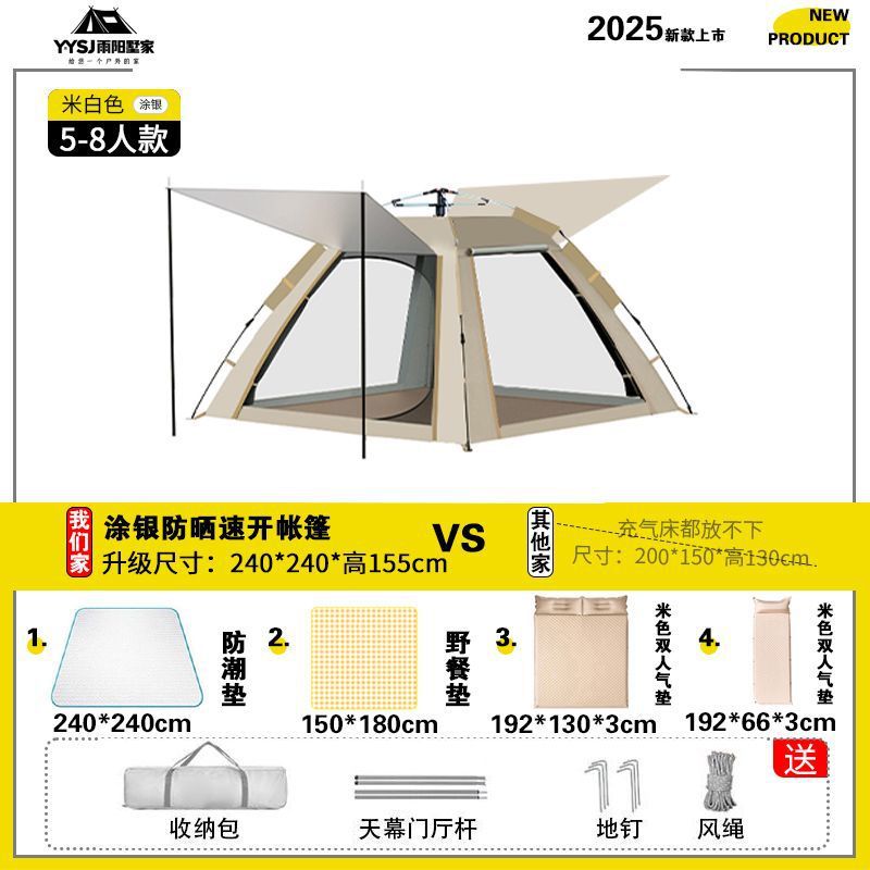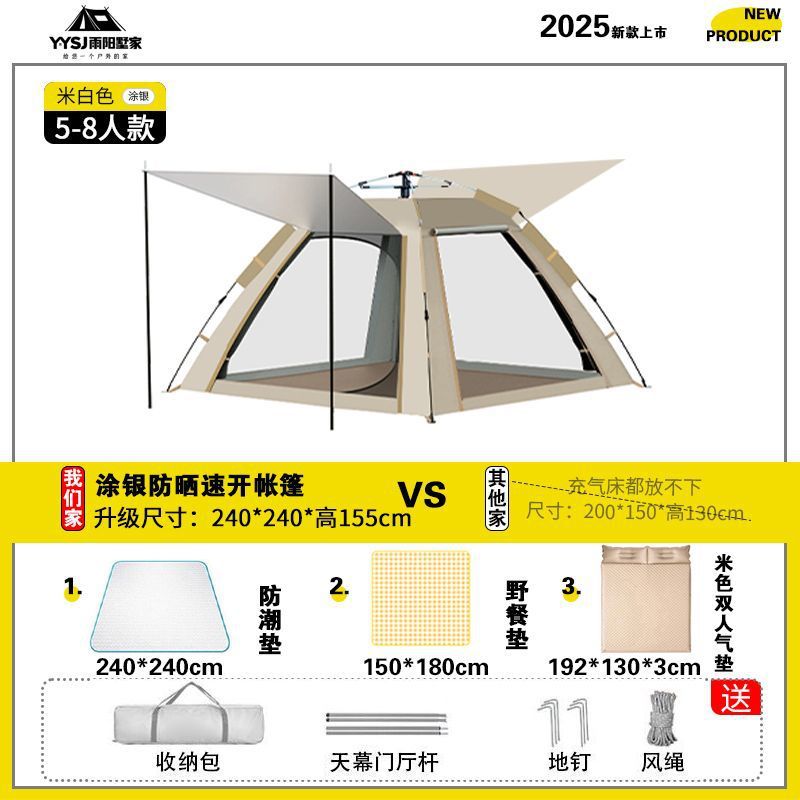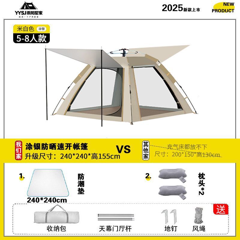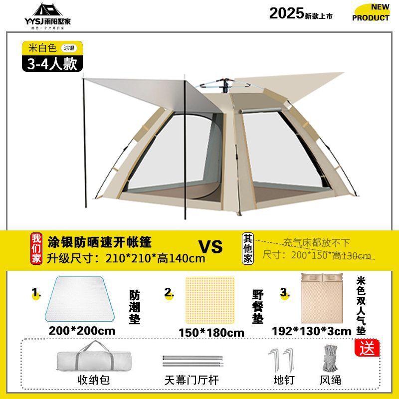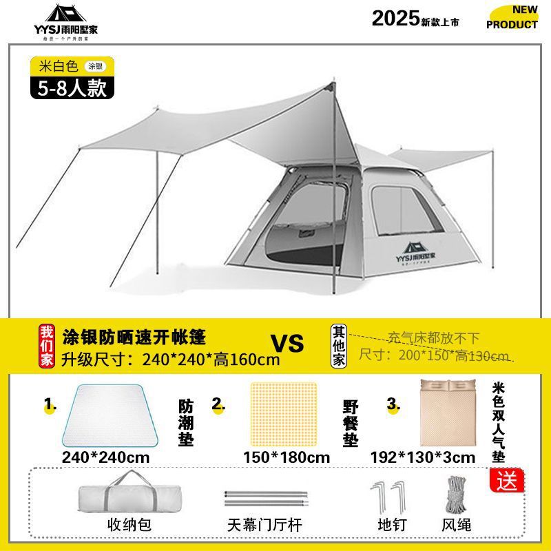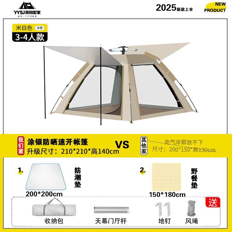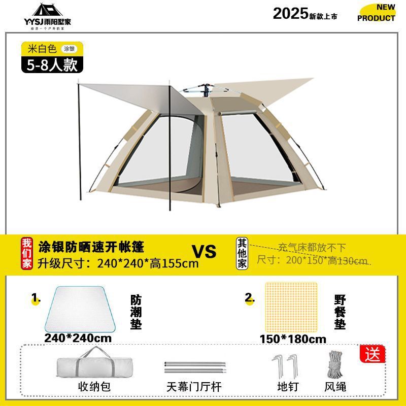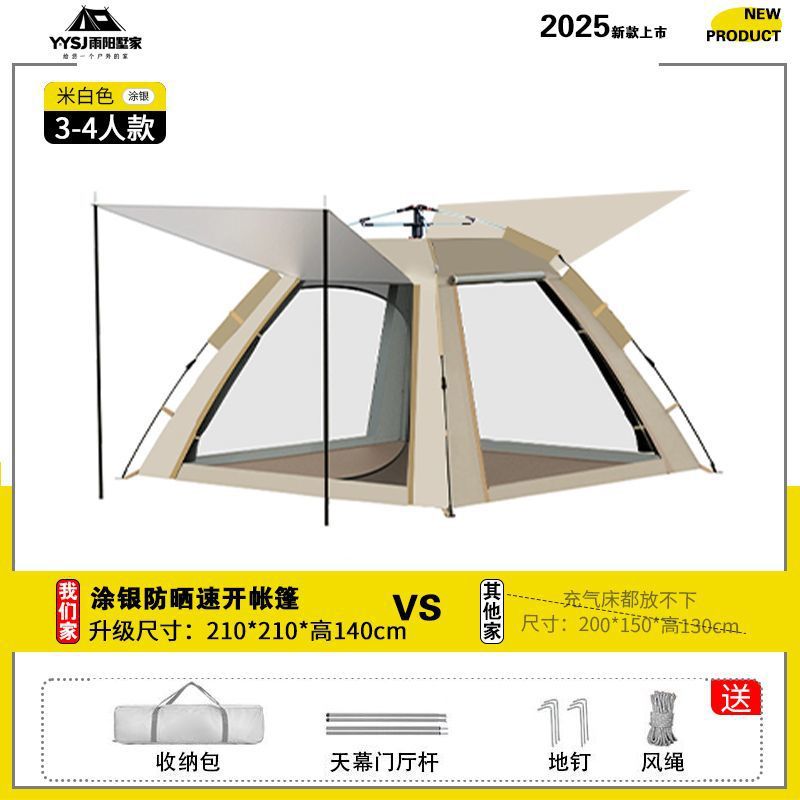 텐트 캐노피 야외 캠핑 접이식 휴대용 두꺼운 실버 접착제 밤새 방수 캠핑 장비 완전 자동 세트스토어 가기