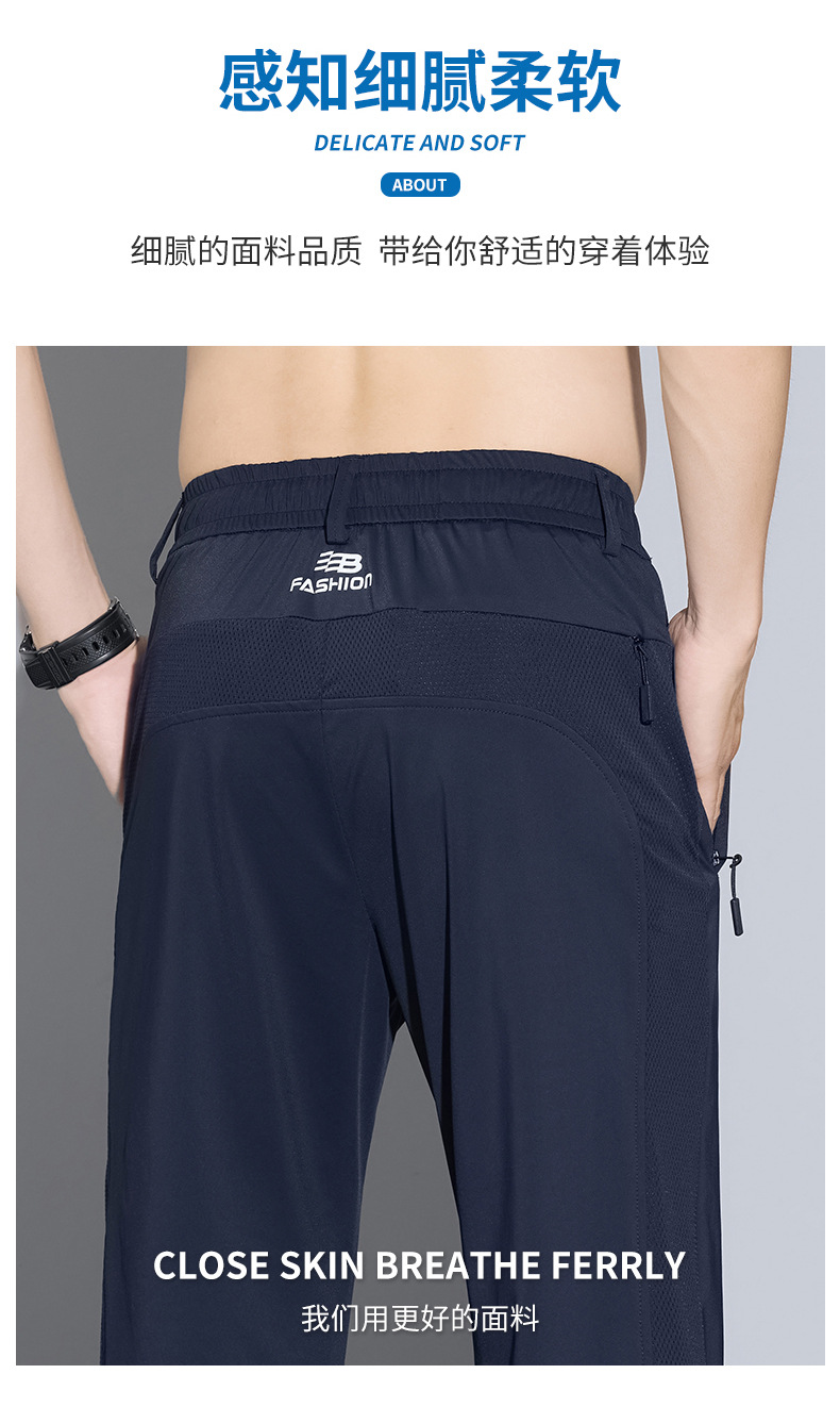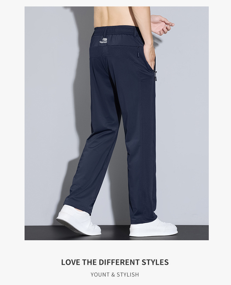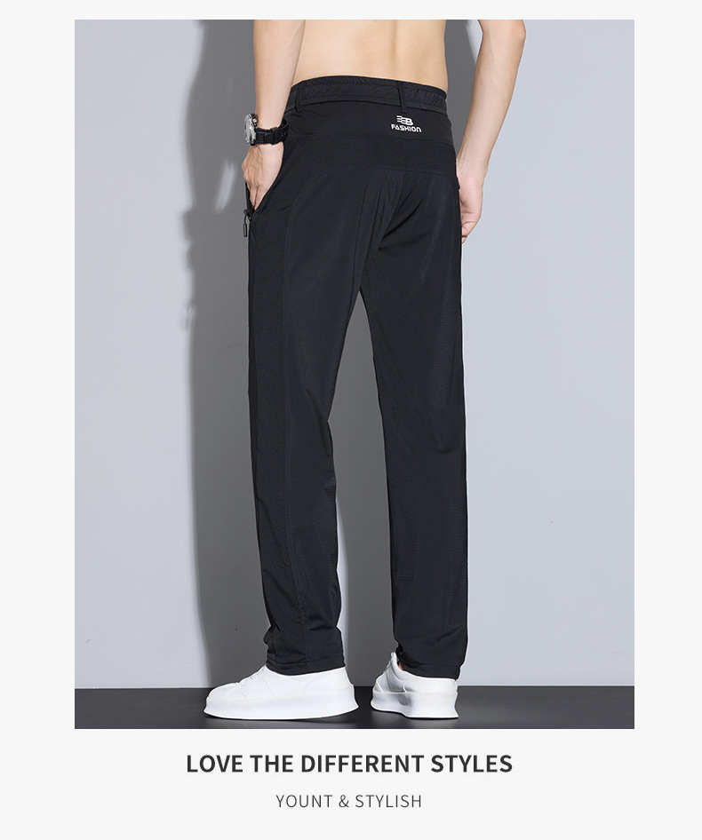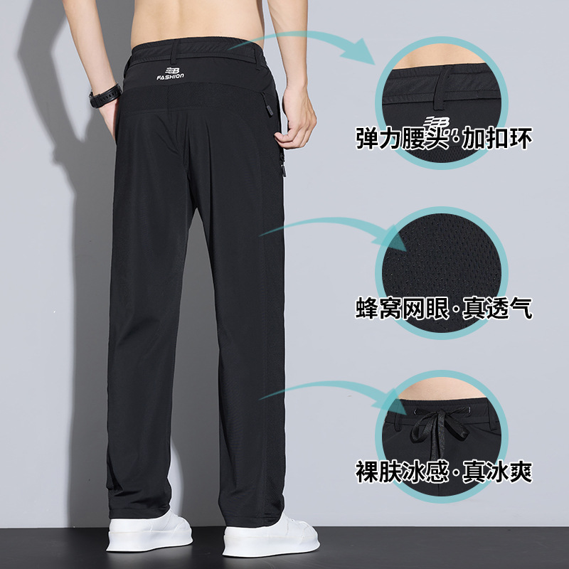 남성 바지 여름 얇은 신제품 얼음 실크 메쉬 얼음 느낌 속건 스포츠 스트레이트 남성 얼음 실크 캐주얼 바지
