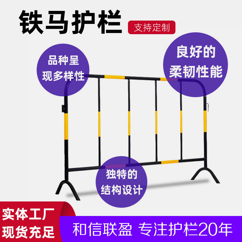 Hexin Tiema 안전 가드 레일 도로 이벤트 건설 이동식 격리 반사 바리케이드 임시 전시회 아연 도금 울타리스토어 가기