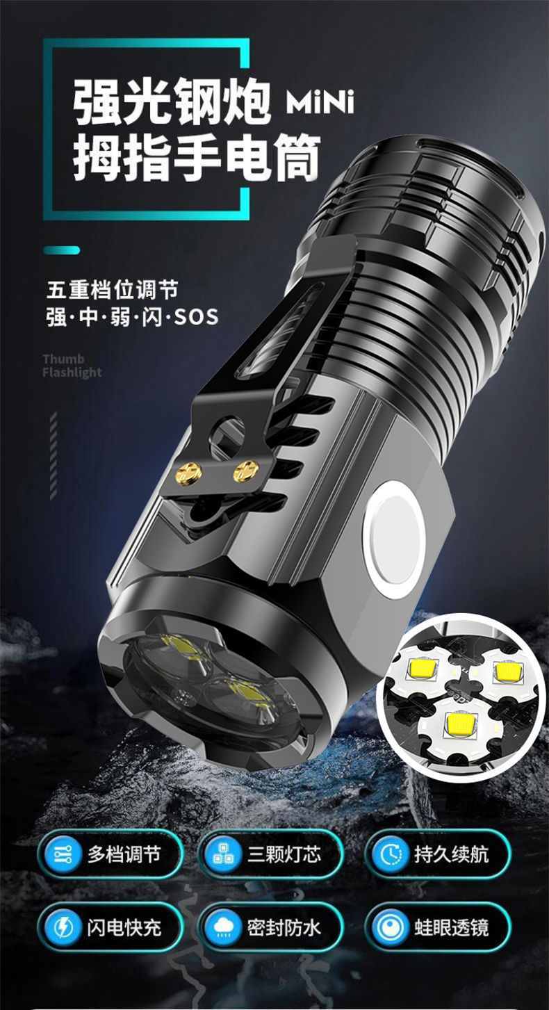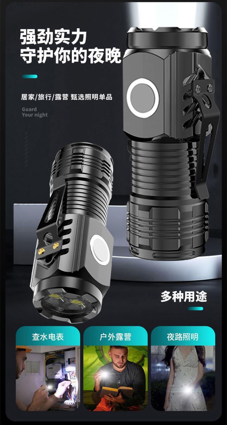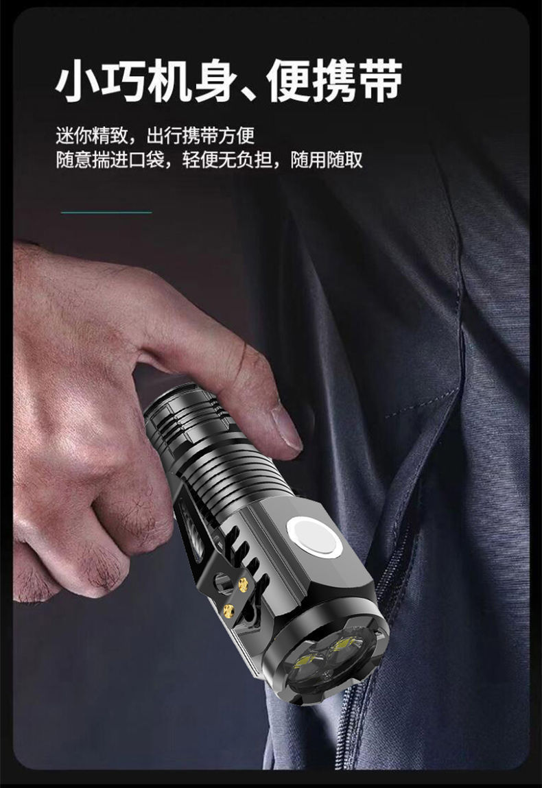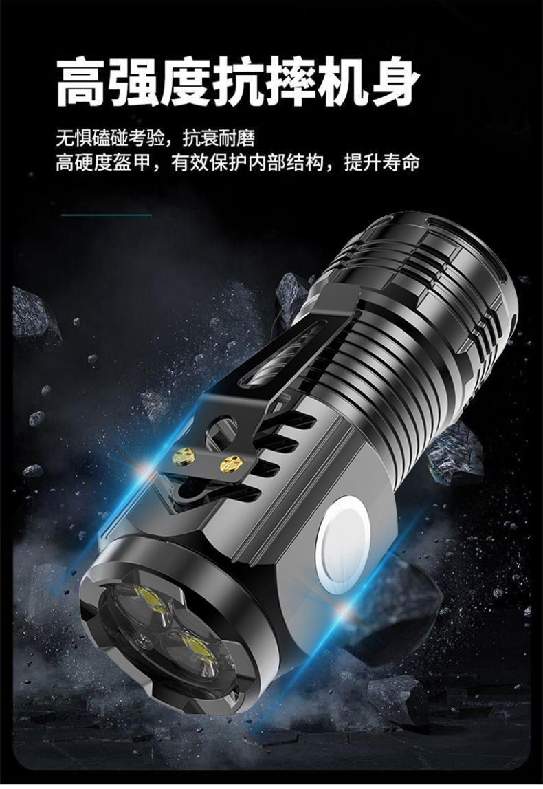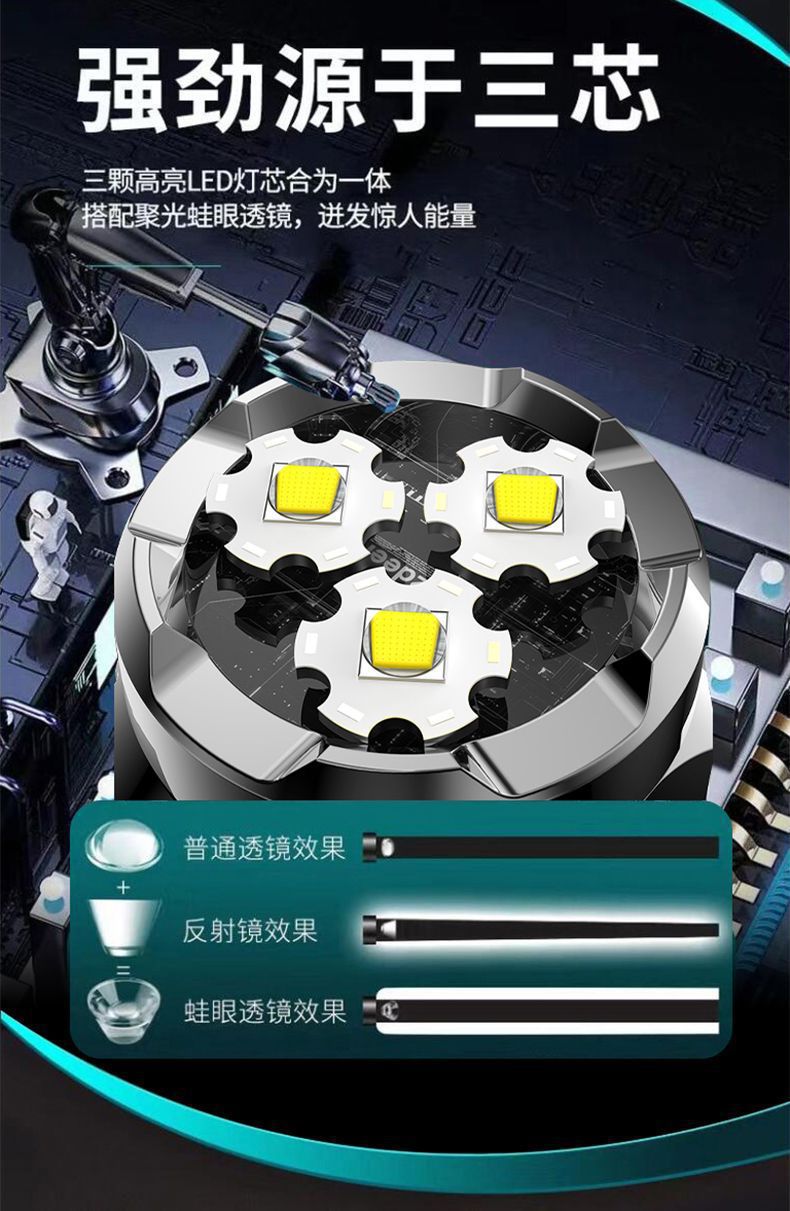 LED 삼안 강광 손전등 USB 충전 다기능 장거리 손전등 야외 휴대용 비상등 강력 자석스토어 가기