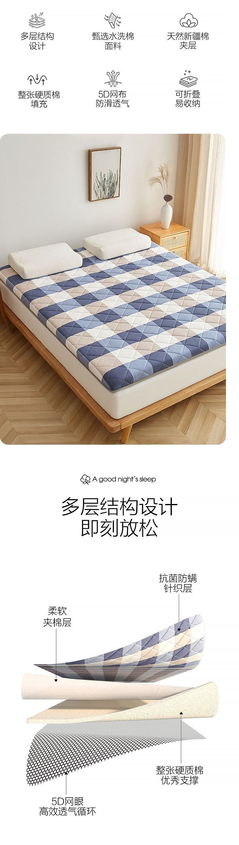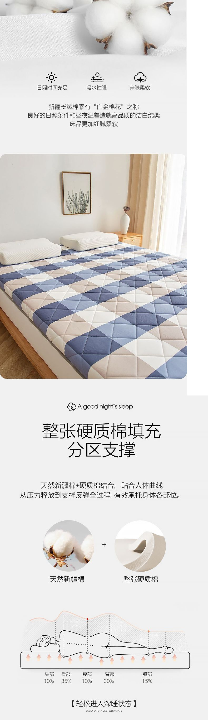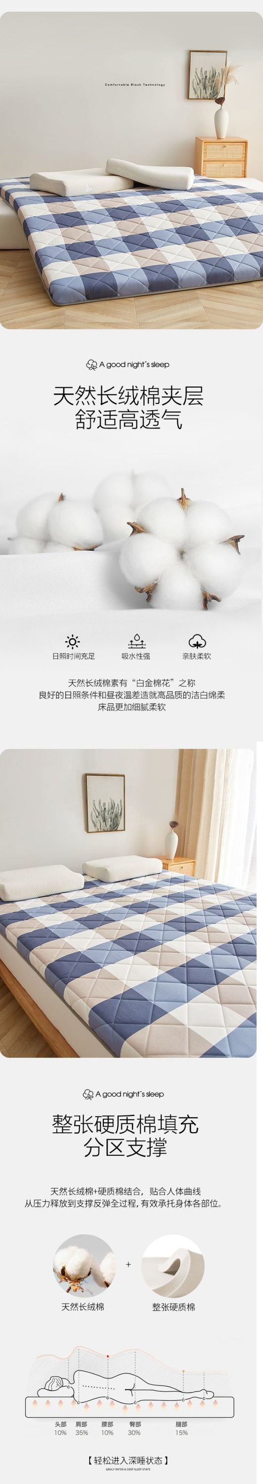 • 1.5*1.9m 침대에 적합 [고품질 신장 면 충전재]