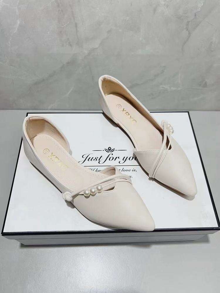 이브닝 슈즈 프렌치 페어리 이브닝 스타일 부드러운 가죽 2025 여성용 포인티드 스프링 플랫 뉴 에어 사이드 슈즈스토어 가기