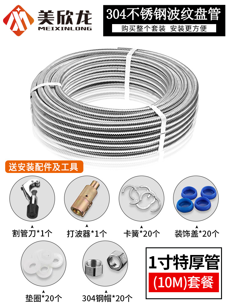 304 스테인레스 스틸 벨로우즈 4 포인트 6 포인트 1 인치 온수기 연결 냉온수 파이프 고압 방폭 금속 호스스토어 가기