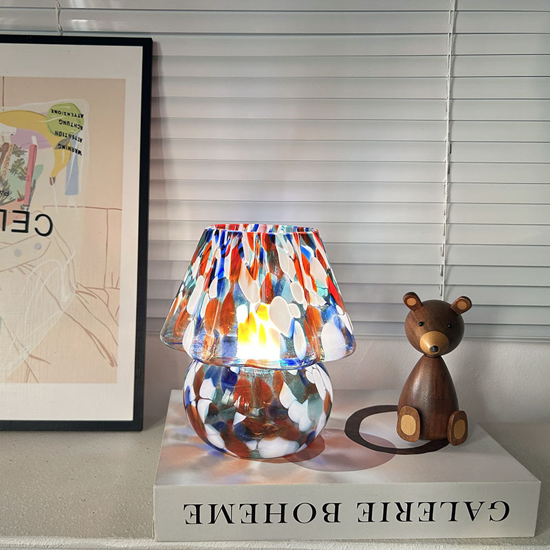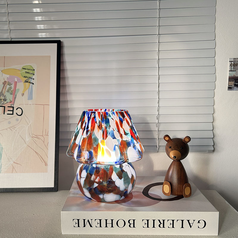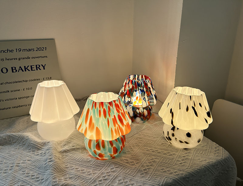 국경 간 창조적 인 꽃 모양의 버섯 램프 크림 스타일 간단한 머리맡 램프 귀여운 ins 소녀 분위기 장식 테이블 램프스토어 가기
