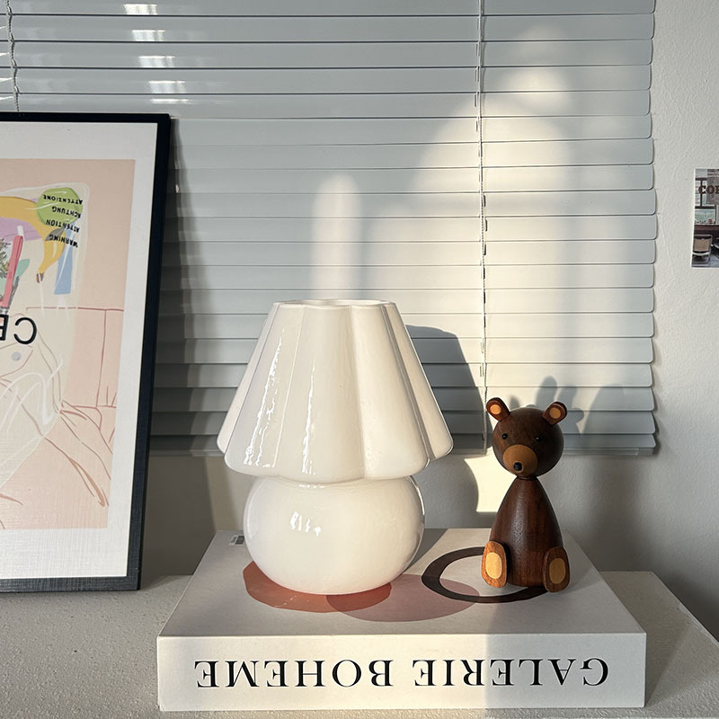 국경 간 창조적 인 꽃 모양의 버섯 램프 크림 스타일 간단한 머리맡 램프 귀여운 ins 소녀 분위기 장식 테이블 램프