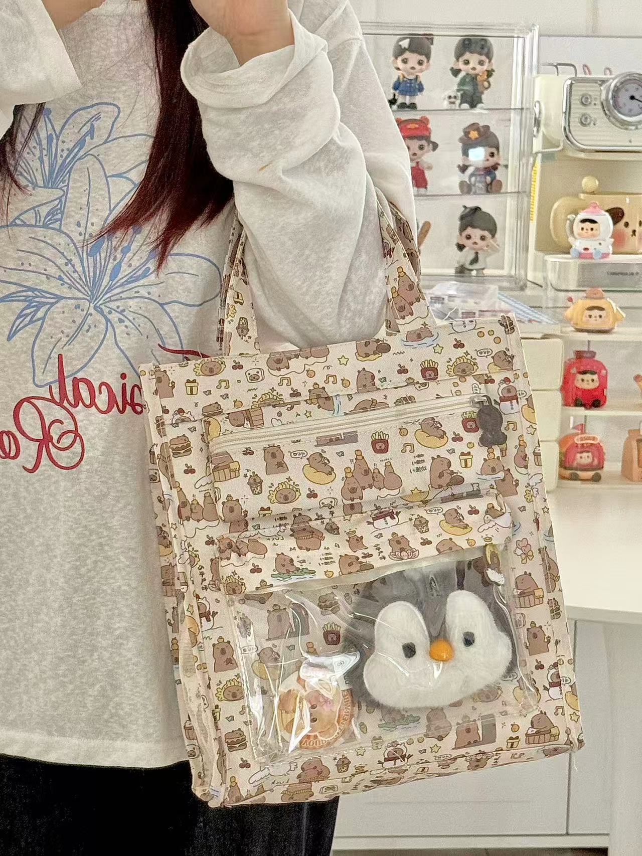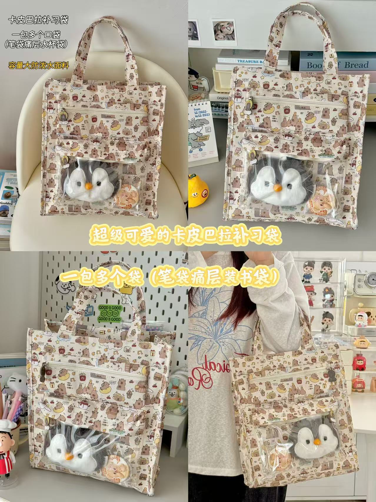 고급스러운 스타일의 가벼운 카피바라 프린트 과외 가방 핸드백 학생 파티 대용량 캔버스 가방 트렌디스토어 가기