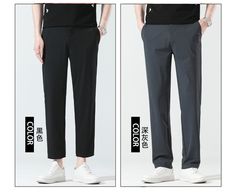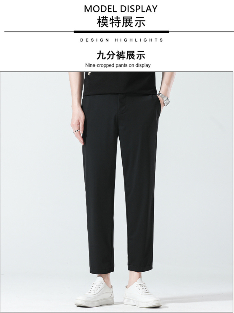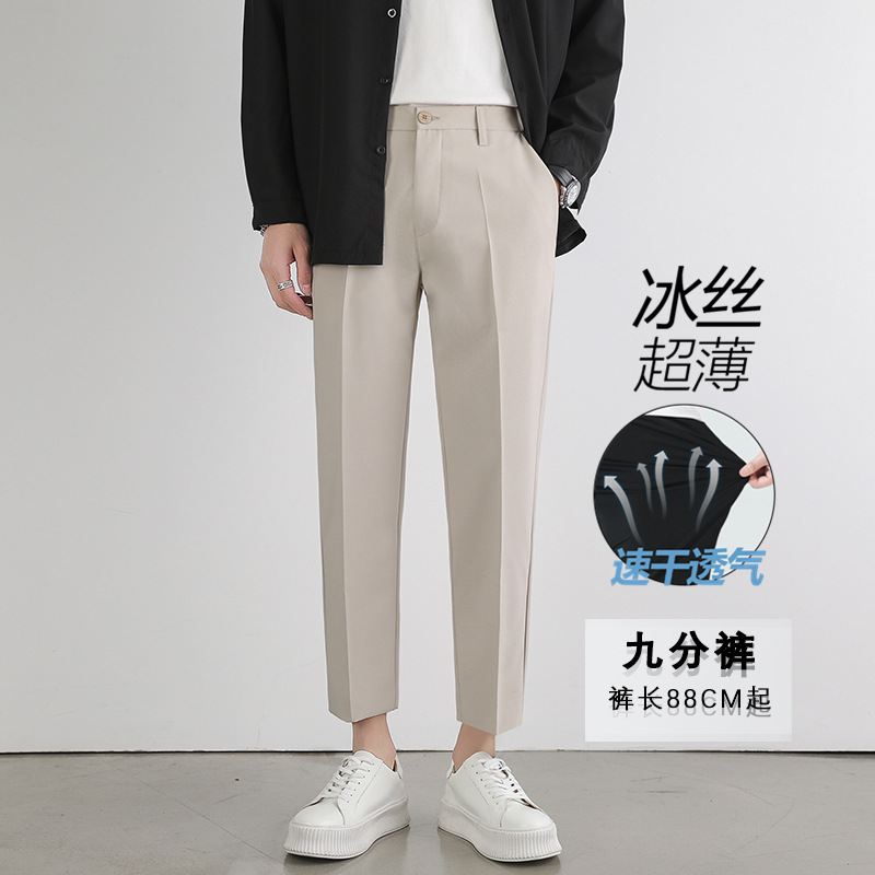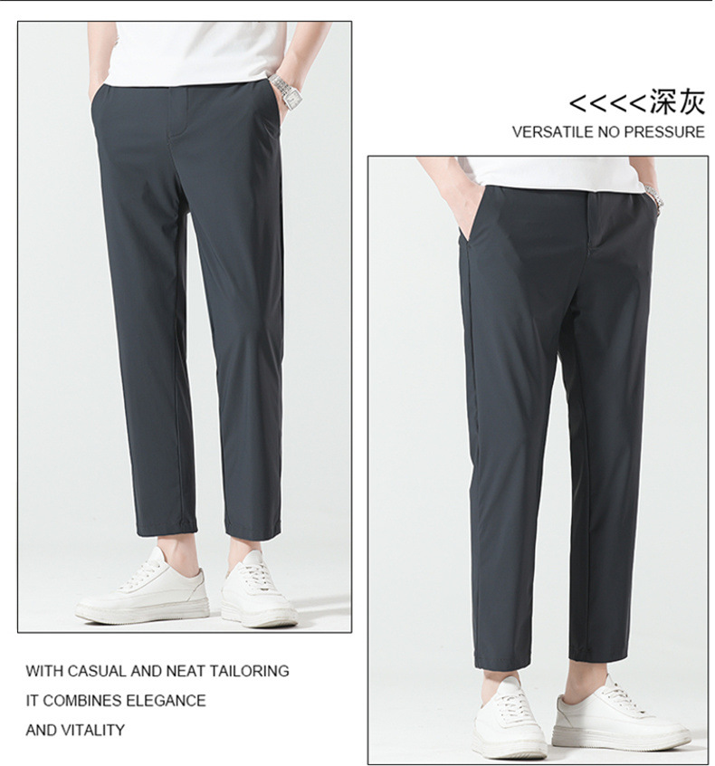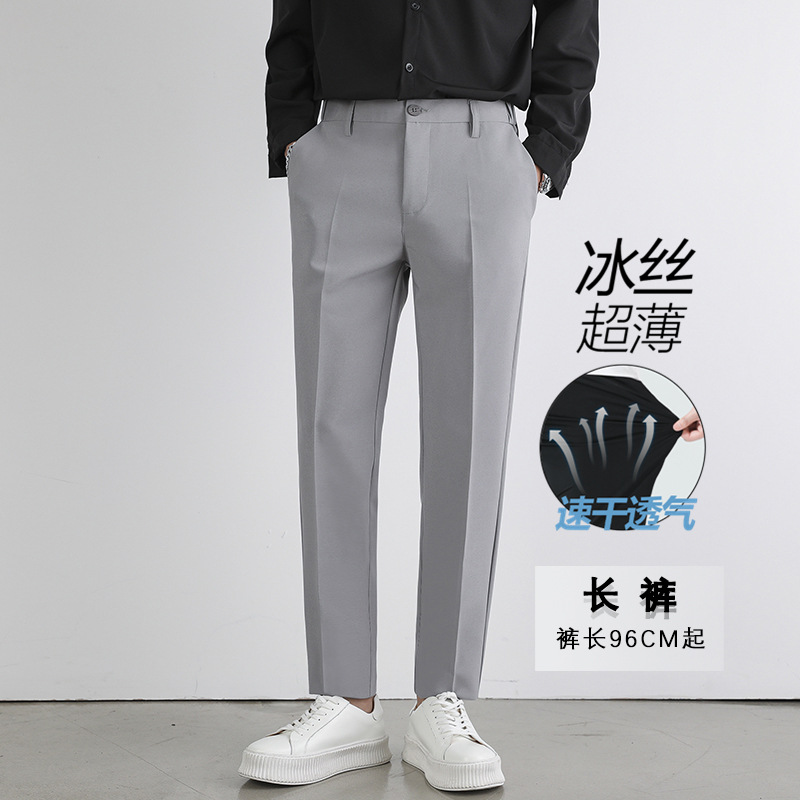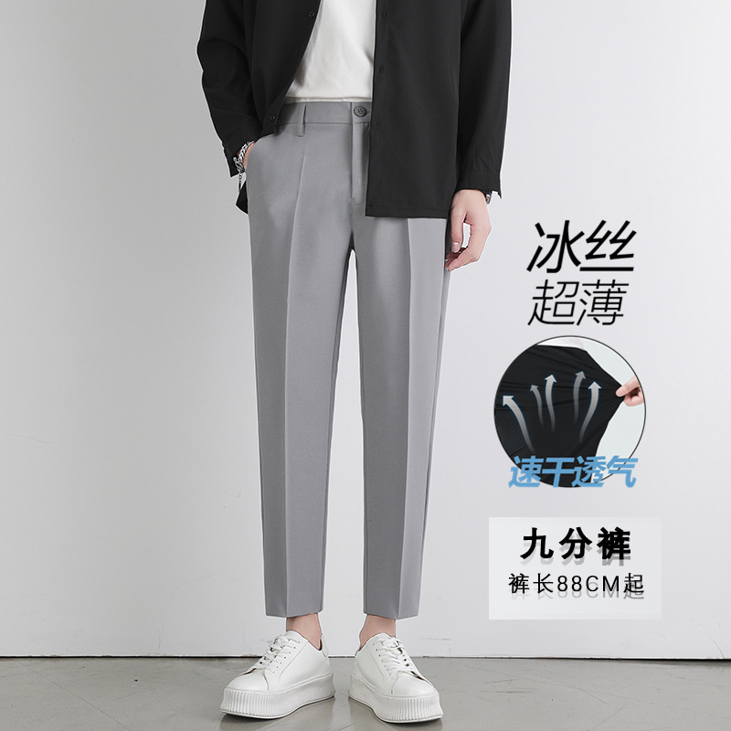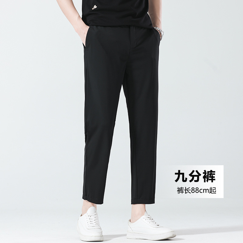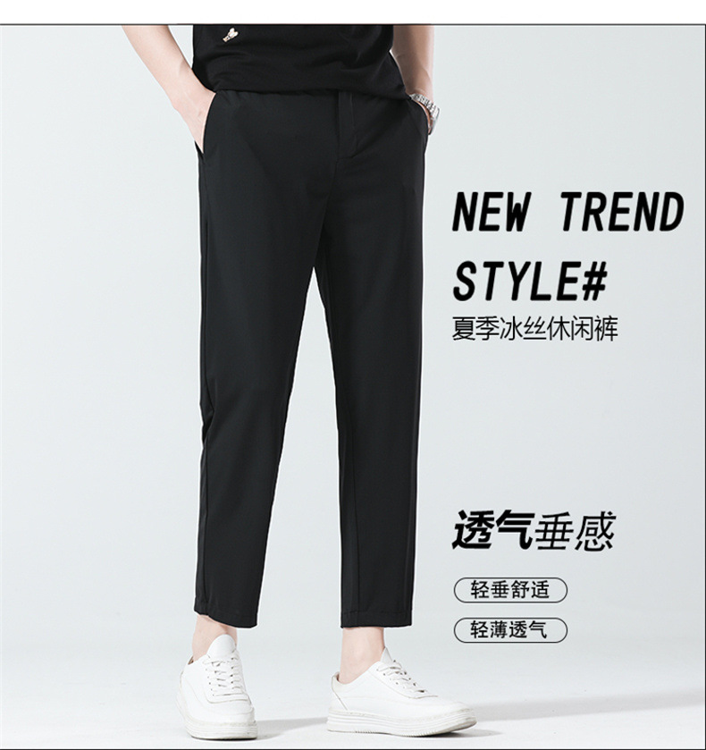 남성용 바지 여름 트렌디 브랜드 남성용 얇은 9부 남성용 바지 아이스 실크 남성 의류 비즈니스 의류 캐주얼 긴 바지