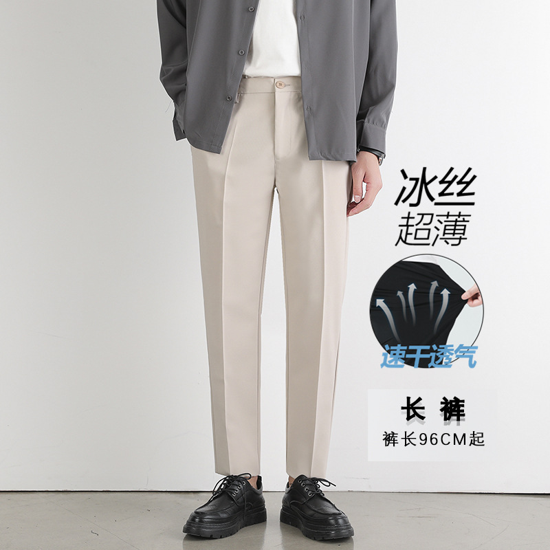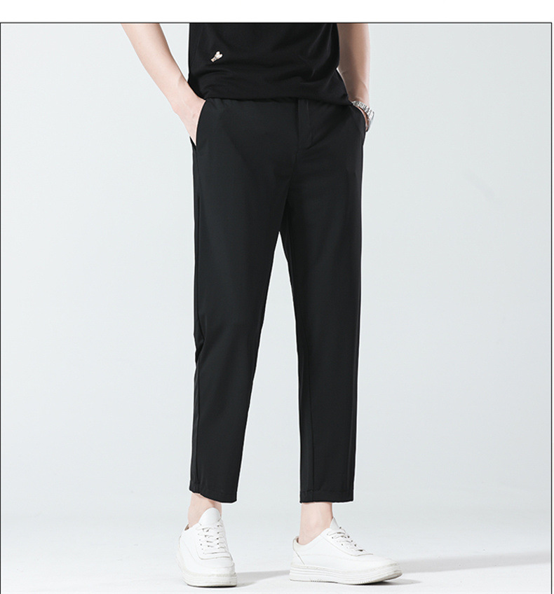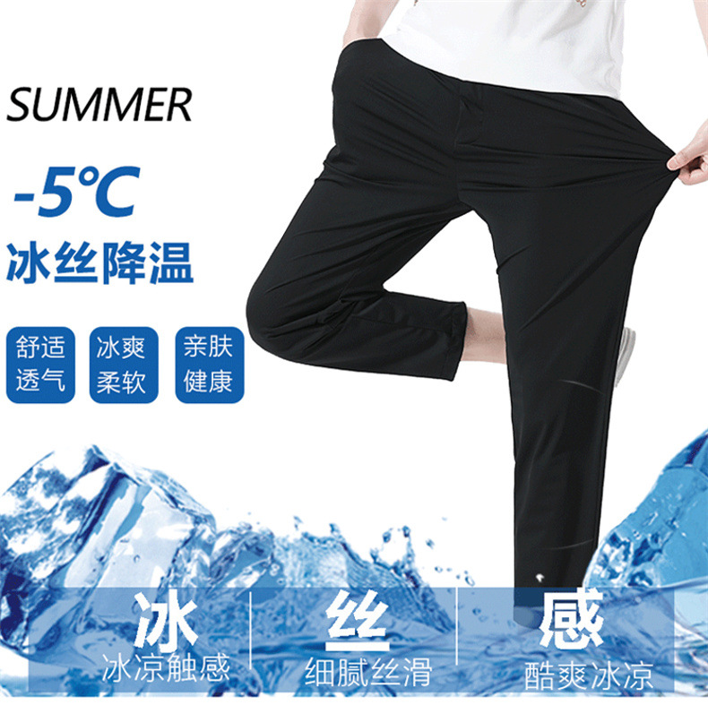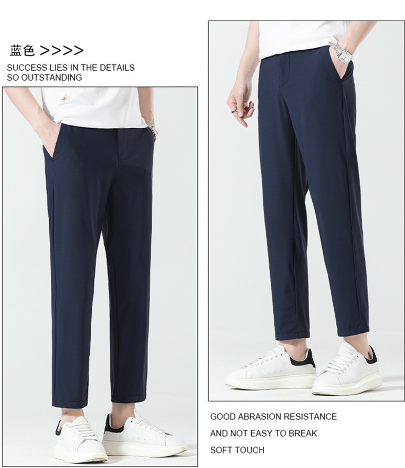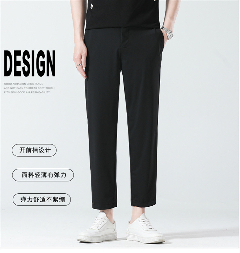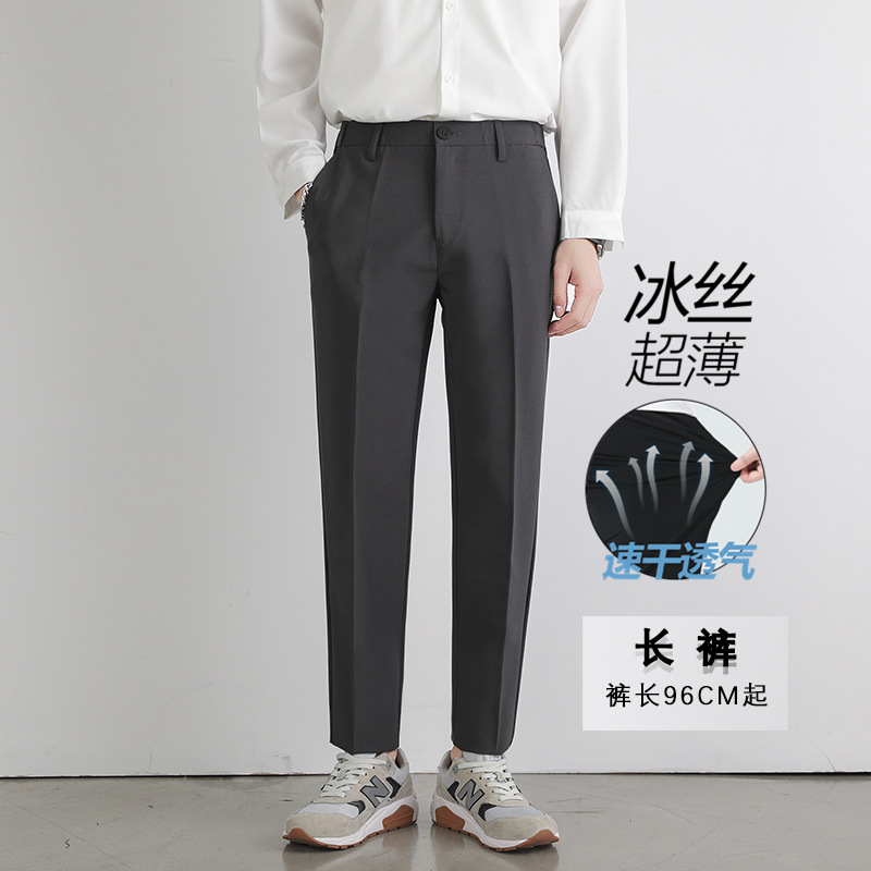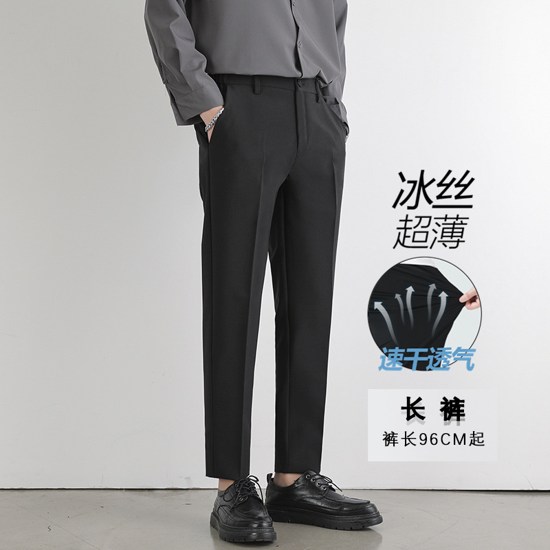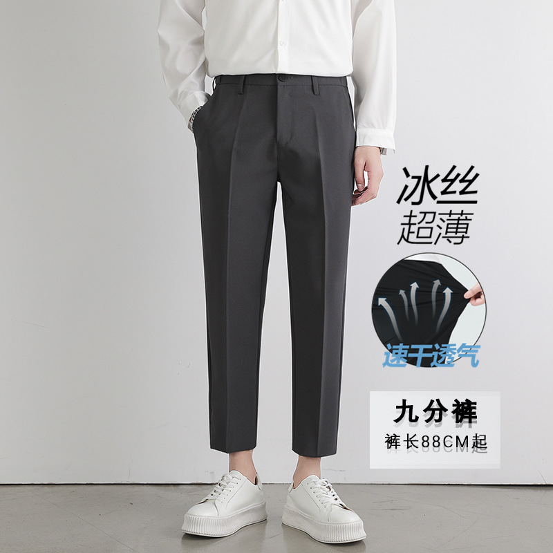 남성용 바지 여름 트렌디 브랜드 남성용 얇은 9부 남성용 바지 아이스 실크 남성 의류 비즈니스 의류 캐주얼 긴 바지