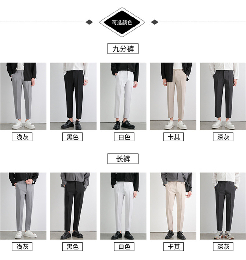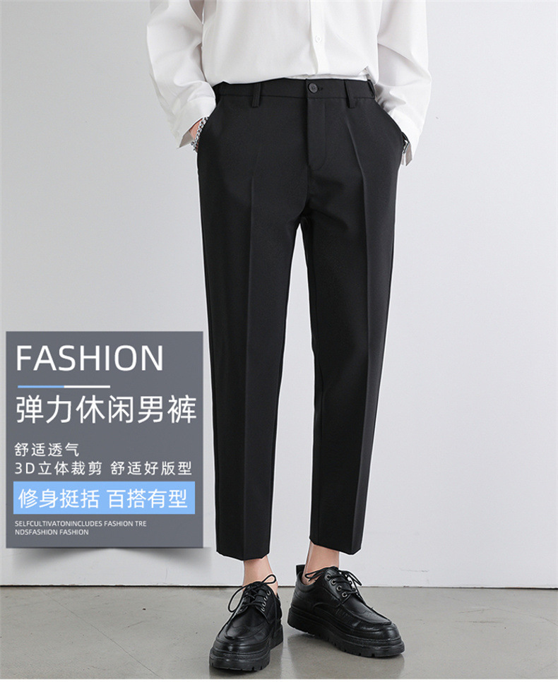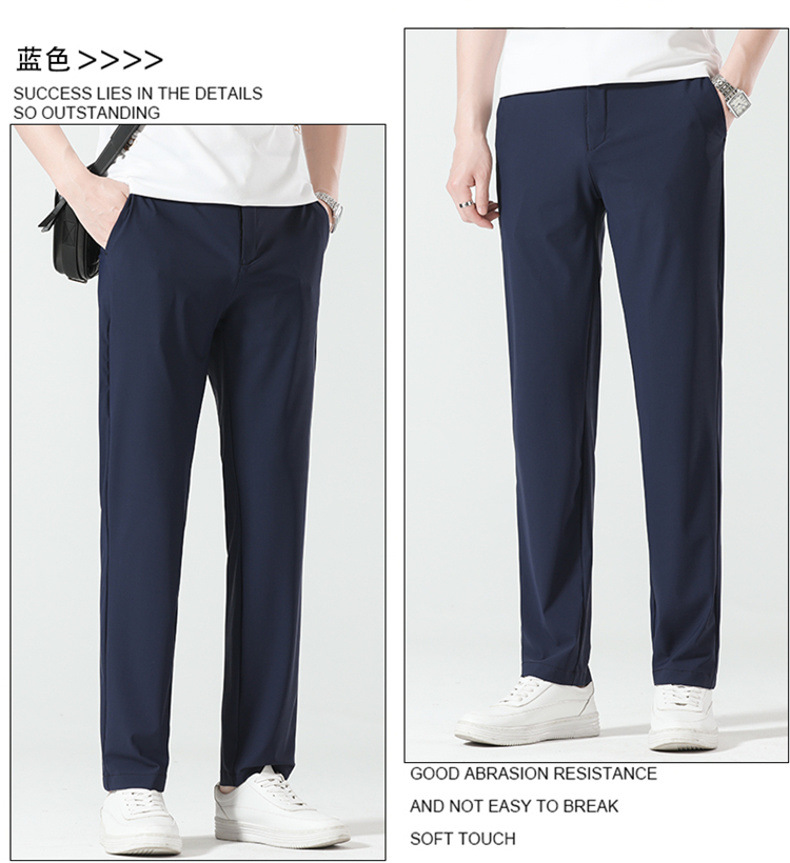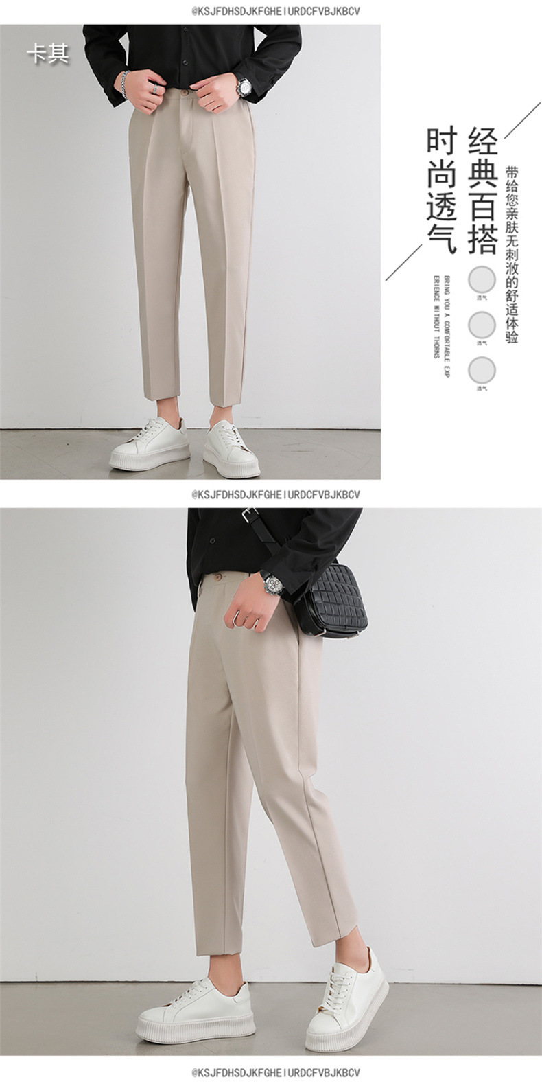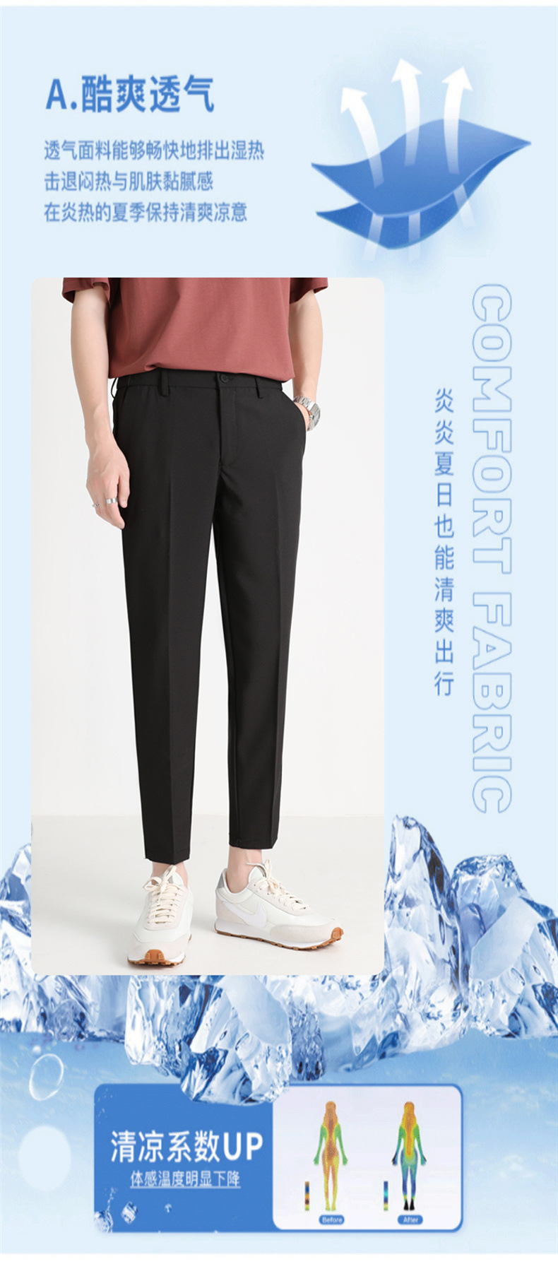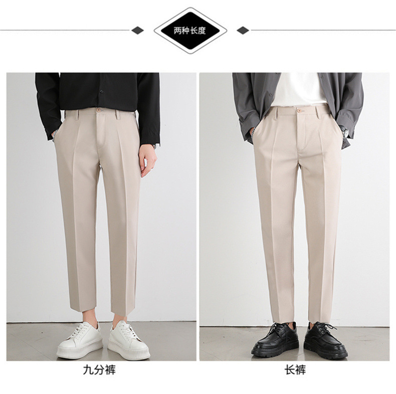 남성용 바지 여름 트렌디 브랜드 남성용 얇은 9부 남성용 바지 아이스 실크 남성 의류 비즈니스 의류 캐주얼 긴 바지