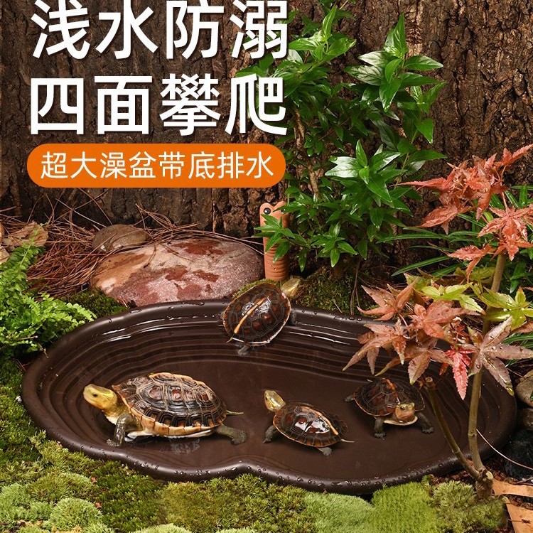 목욕용 거북이 물통, 조경용 목욕통, 사육장, 등반용 애완동물 물거북이, 노란색 가장자리 식수 접시, 반통