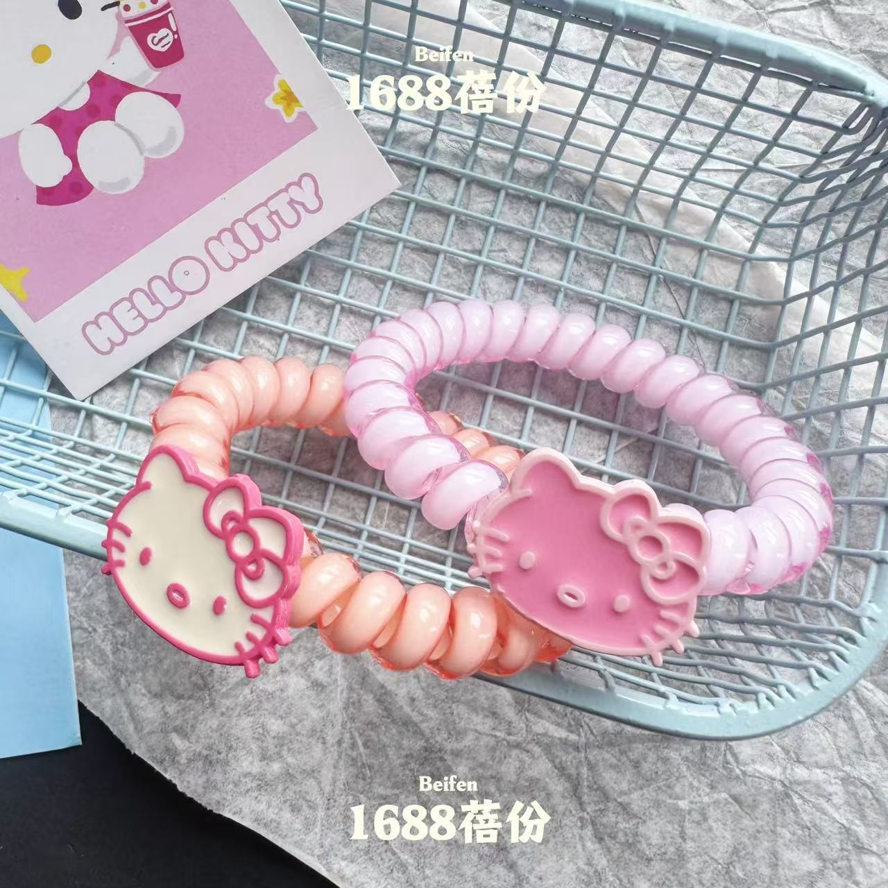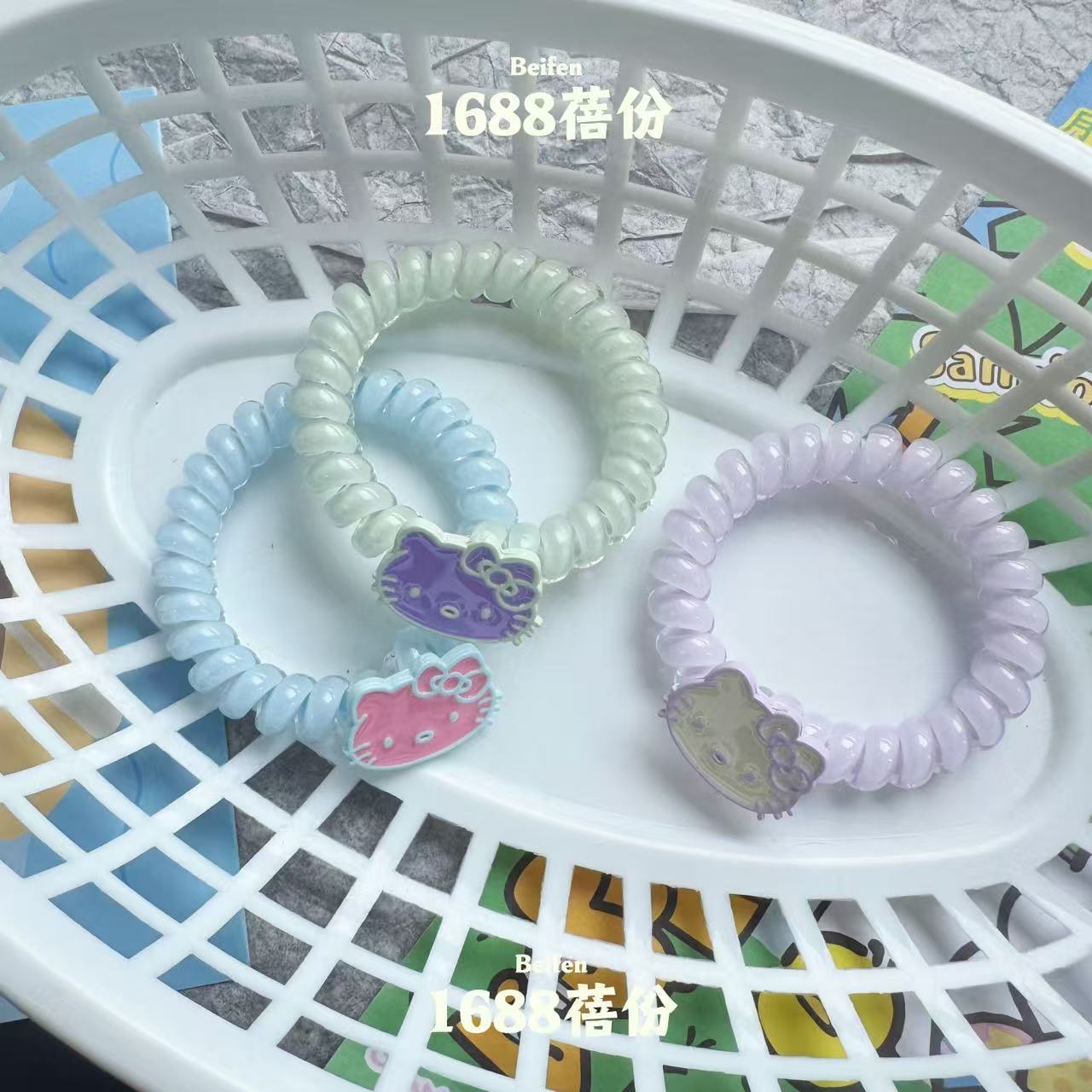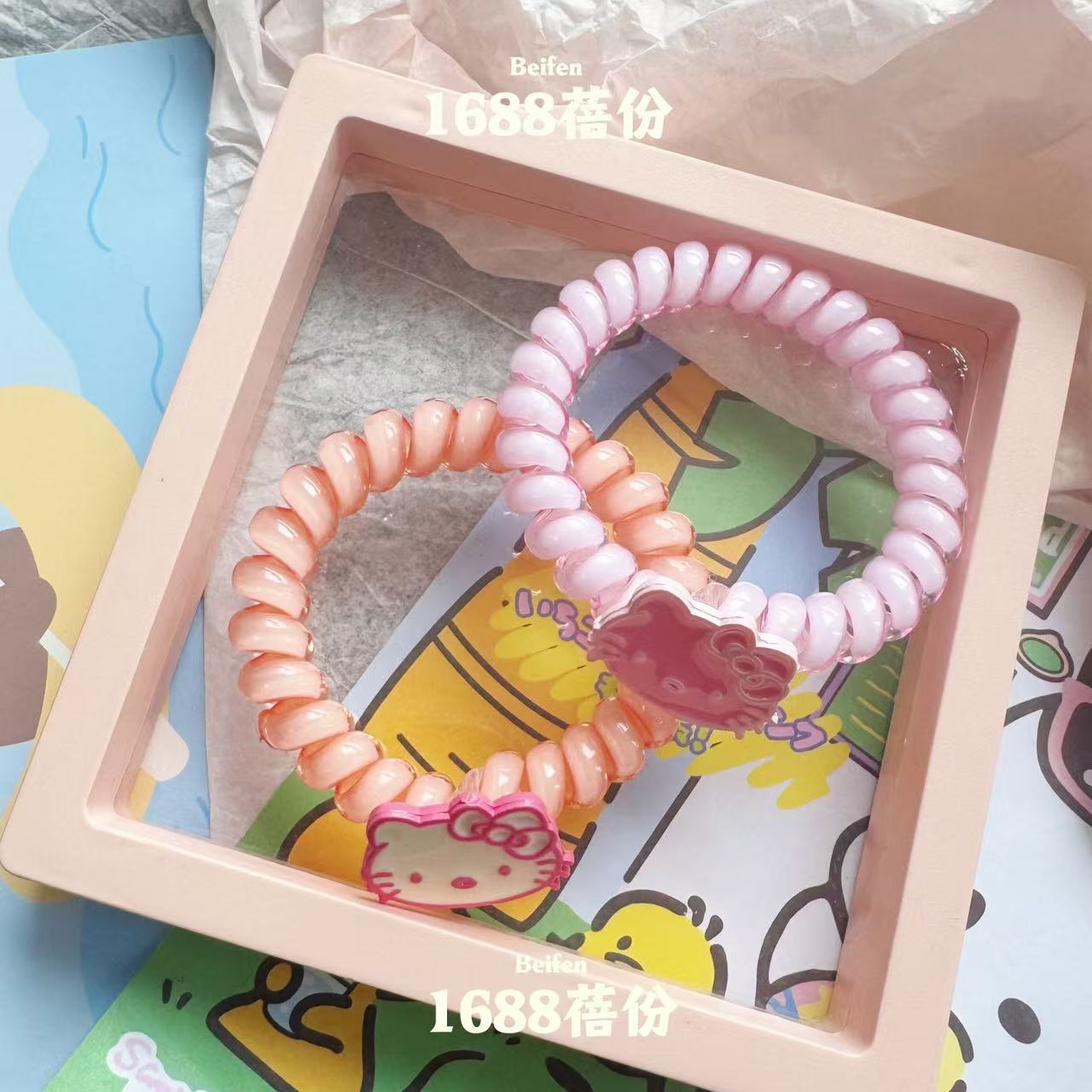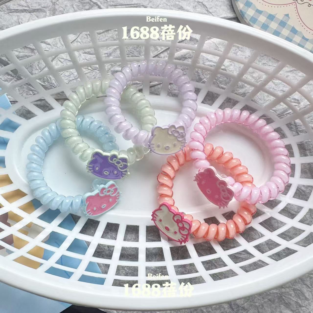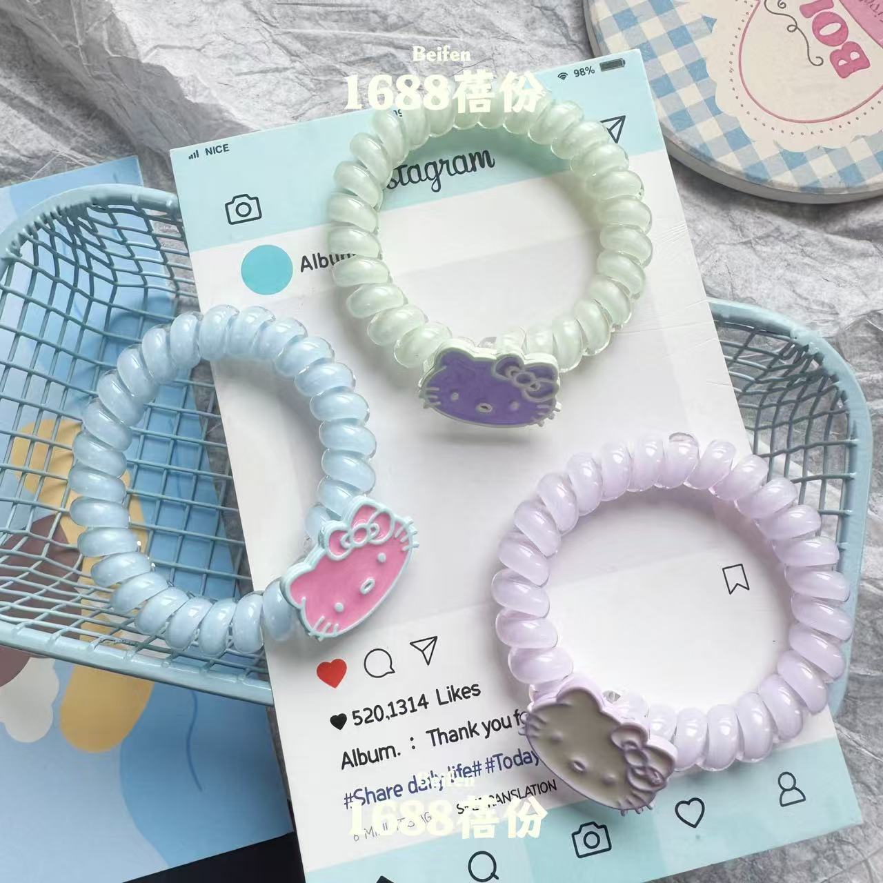 크림 스타일 키티 전화선 헤어 밴드 도파민 만화 포니 테일 헤어 로프 헤어 고무 밴드 높은 탄력성과 내구성스토어 가기