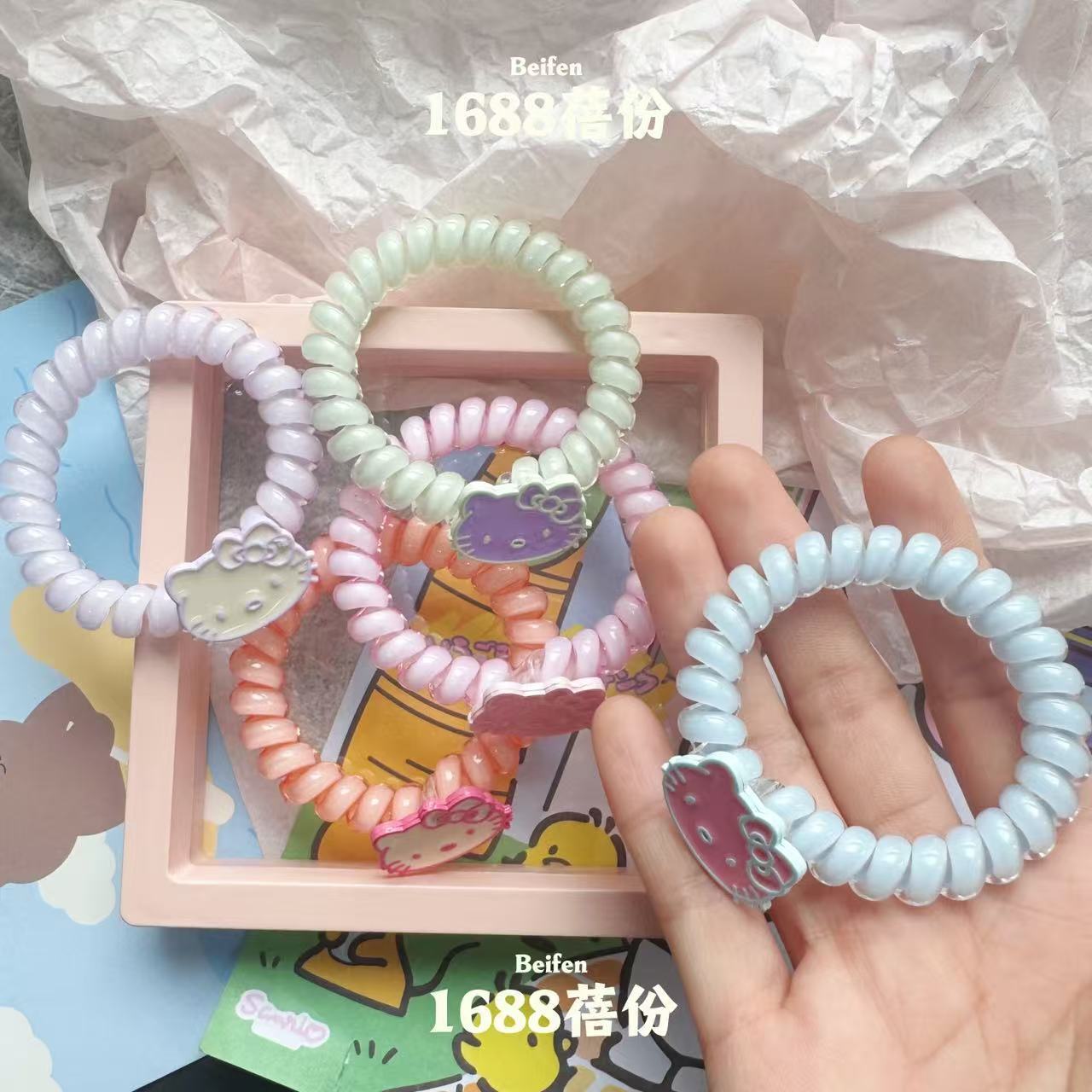 크림 스타일 키티 전화선 헤어 밴드 도파민 만화 포니 테일 헤어 로프 헤어 고무 밴드 높은 탄력성과 내구성