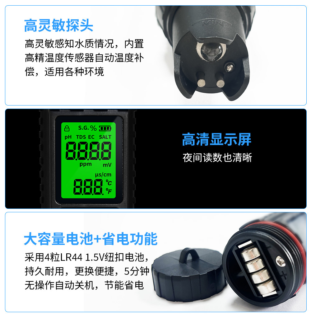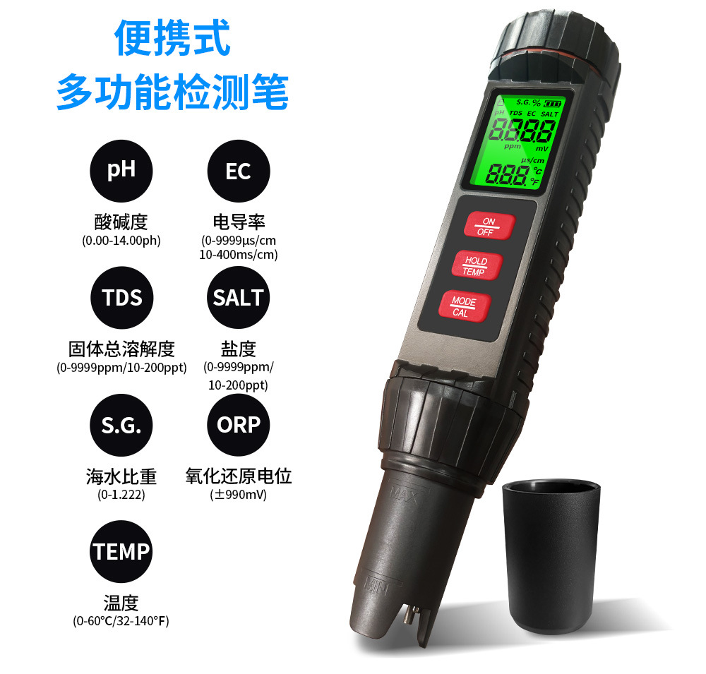신형 7-in-1 다기능 TDS 수질 검사 펜 pH 측정기 고정밀 산도 및 알칼리도 테스트기