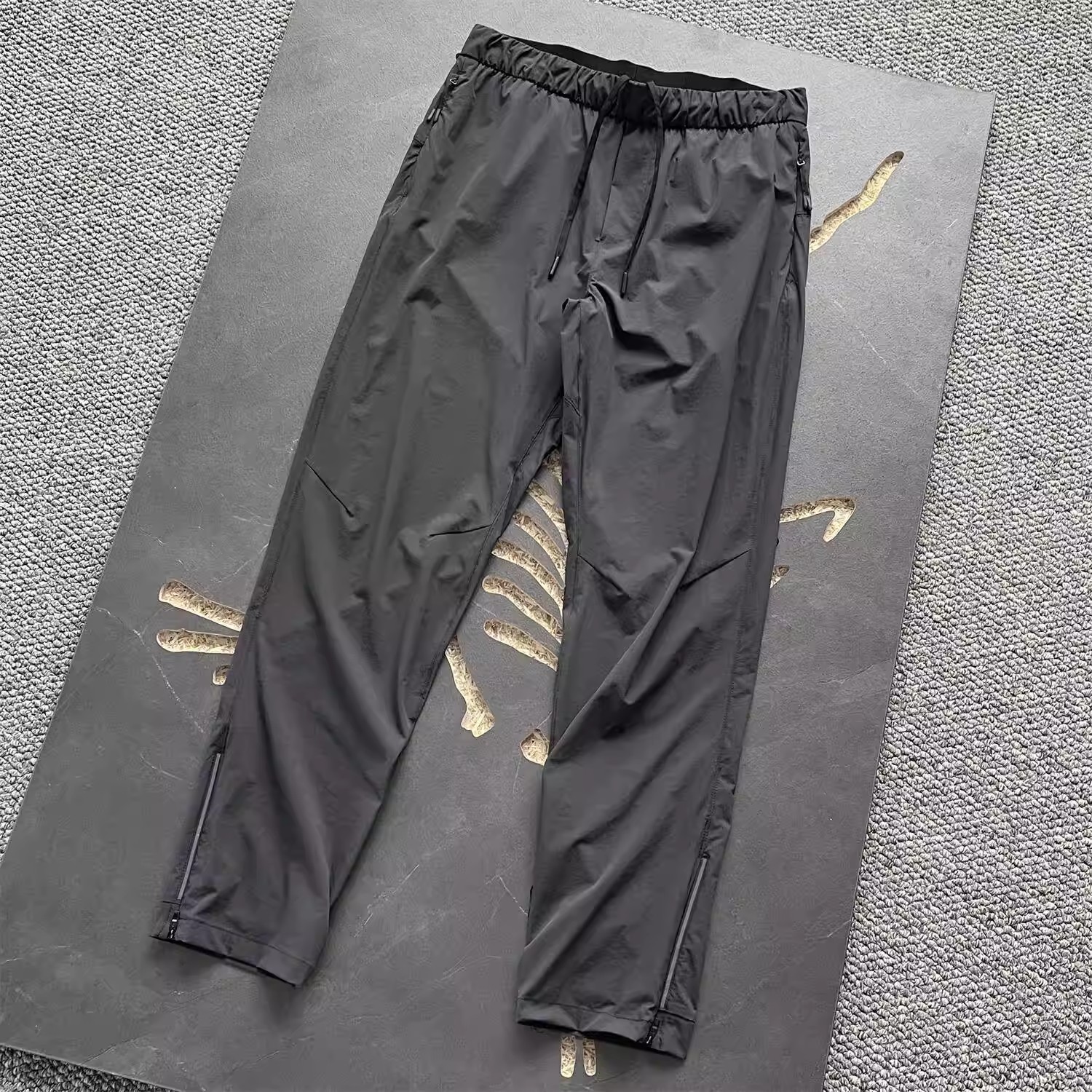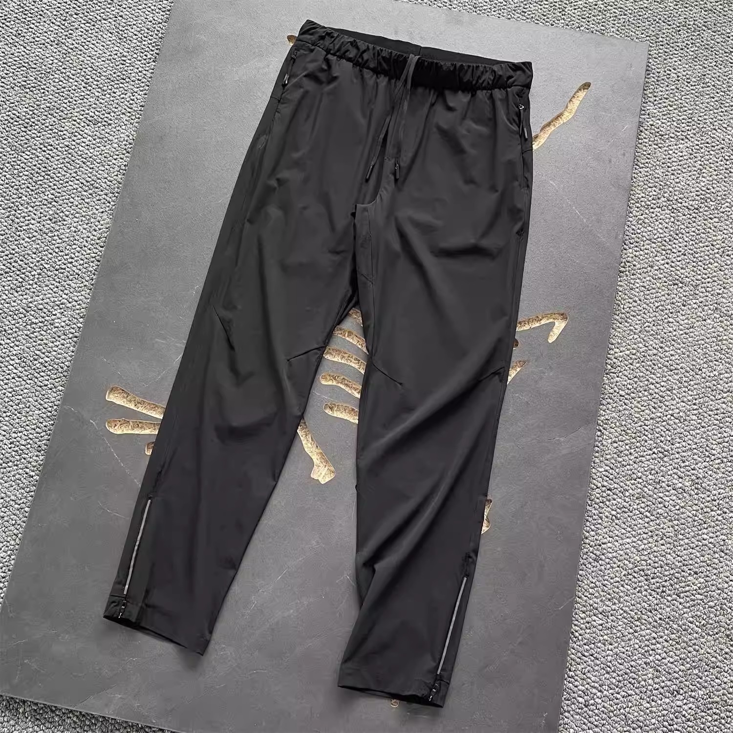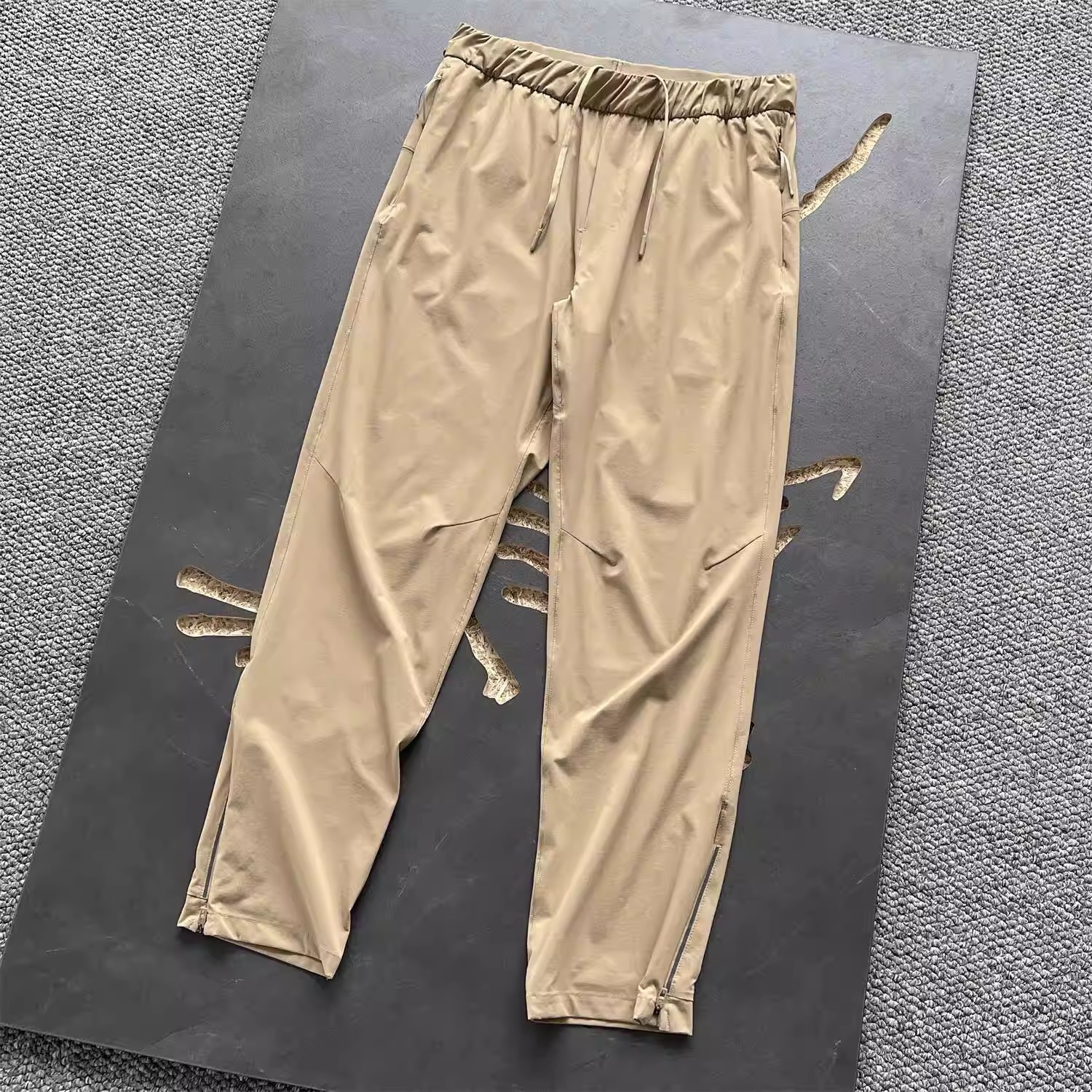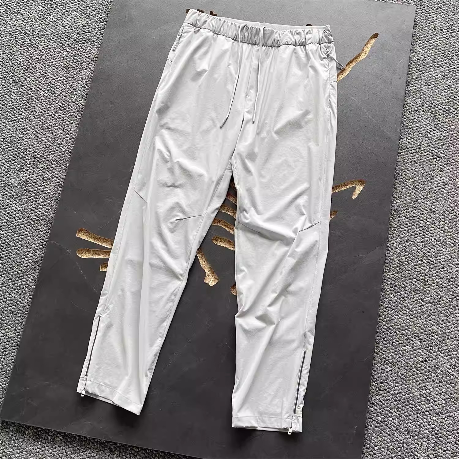 아이스 실크 속건성 바지 남성 여름 얇은 지퍼 슬릿 충전 바지 슬림 피트 솔리드 컬러 캐주얼 스트레이트 바지스토어 가기