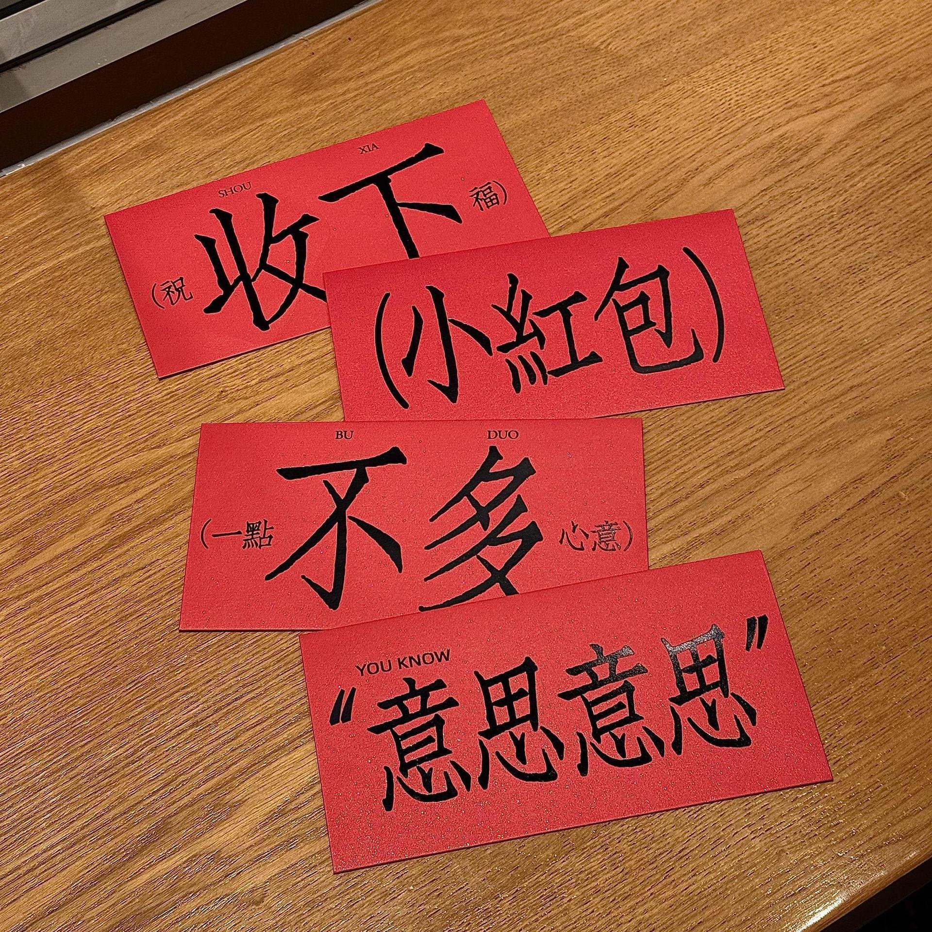 • [의미 + 작은 빨간 봉투 + 많지 않음 + 받아들임] 빨간 봉투는 총 4개입니다.