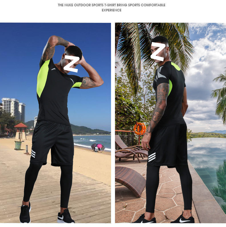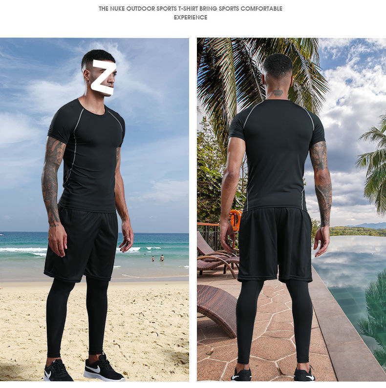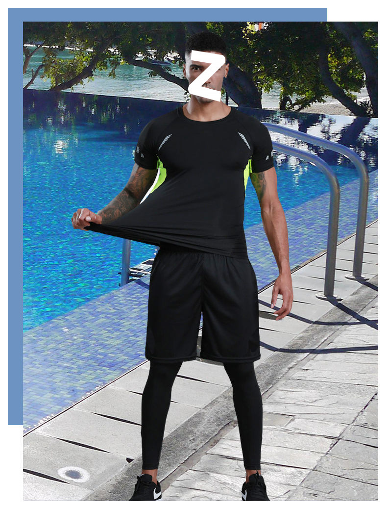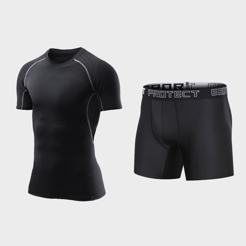 • (수영모 발송) 001 그레이 라인 반팔 + 블랙 타이트 반바지