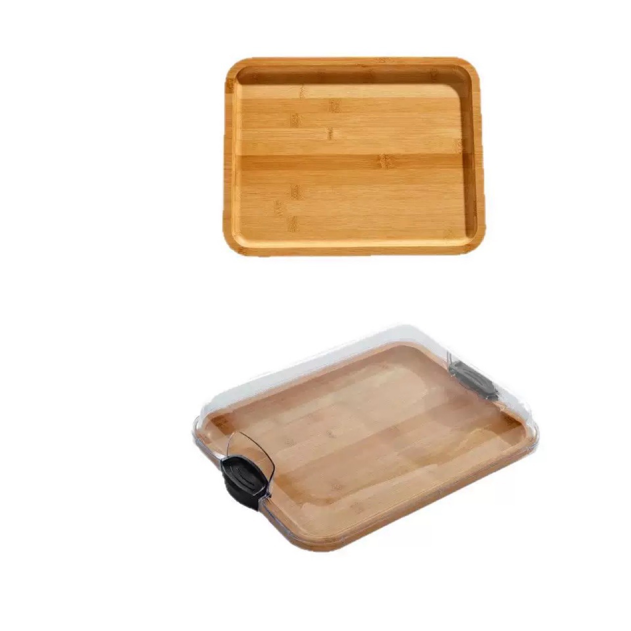 뚜껑이 있는 새로운 대나무 나무 트레이, 휴대용 피크닉 캠핑 과일 치즈 디저트 멀티 그리드 원목 세트