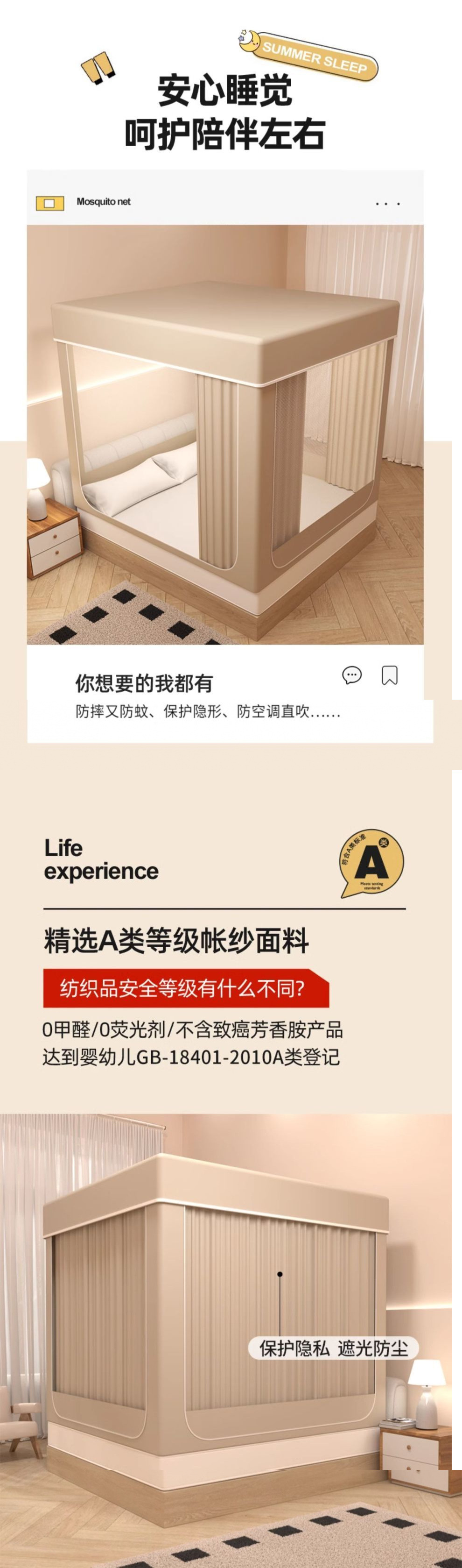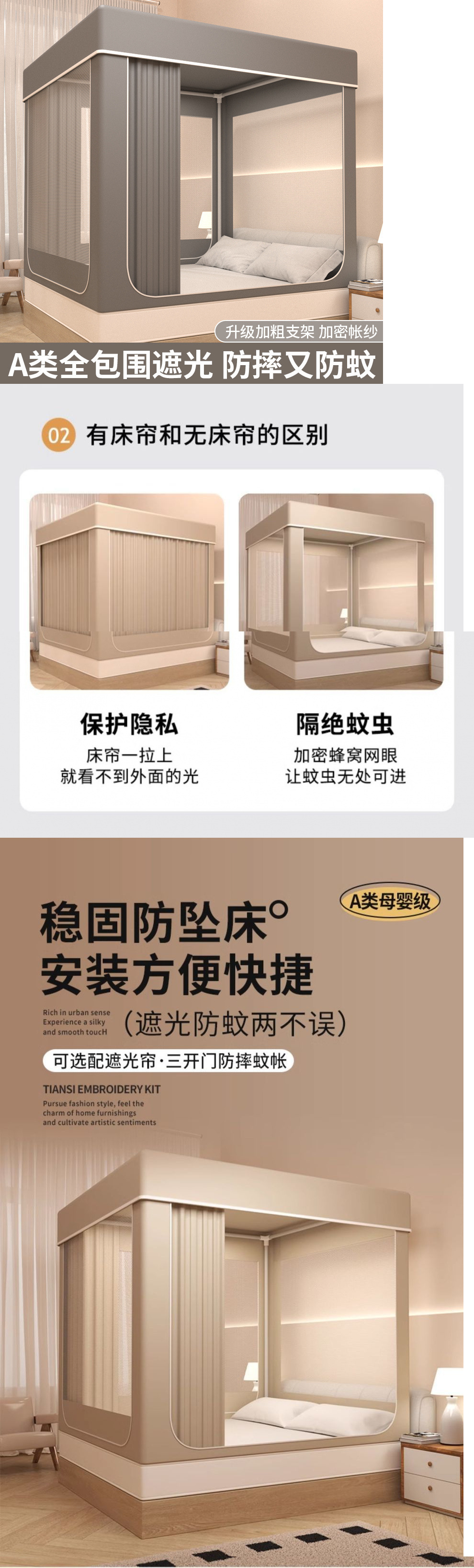 새로운 방진 및 차광 모기장, 3개의 문이 있는 어린이 낙하 방지 모기장, 가정용 침실 침대 커튼, 완전히 밀폐된 몽골리안 텐트스토어 가기