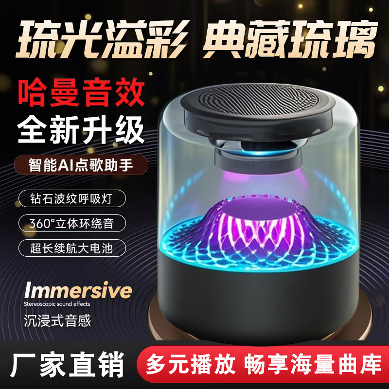 국경 간 유리 무선 블루투스 오디오 서브 우퍼 다채로운 조명 홈 데스크탑 대용량 스피커 스피커스토어 가기