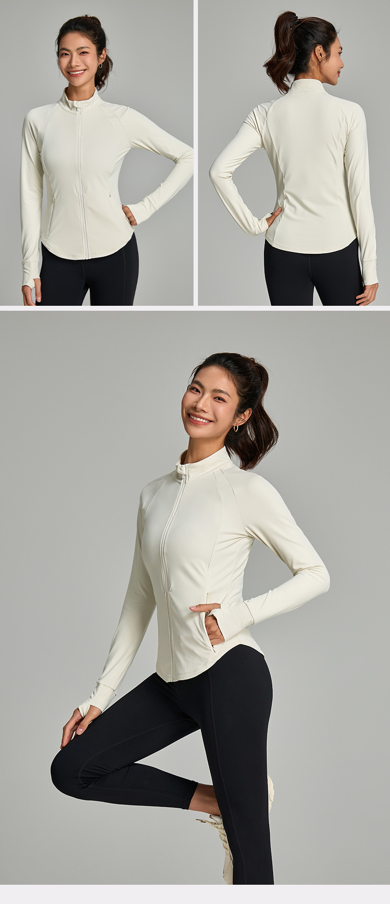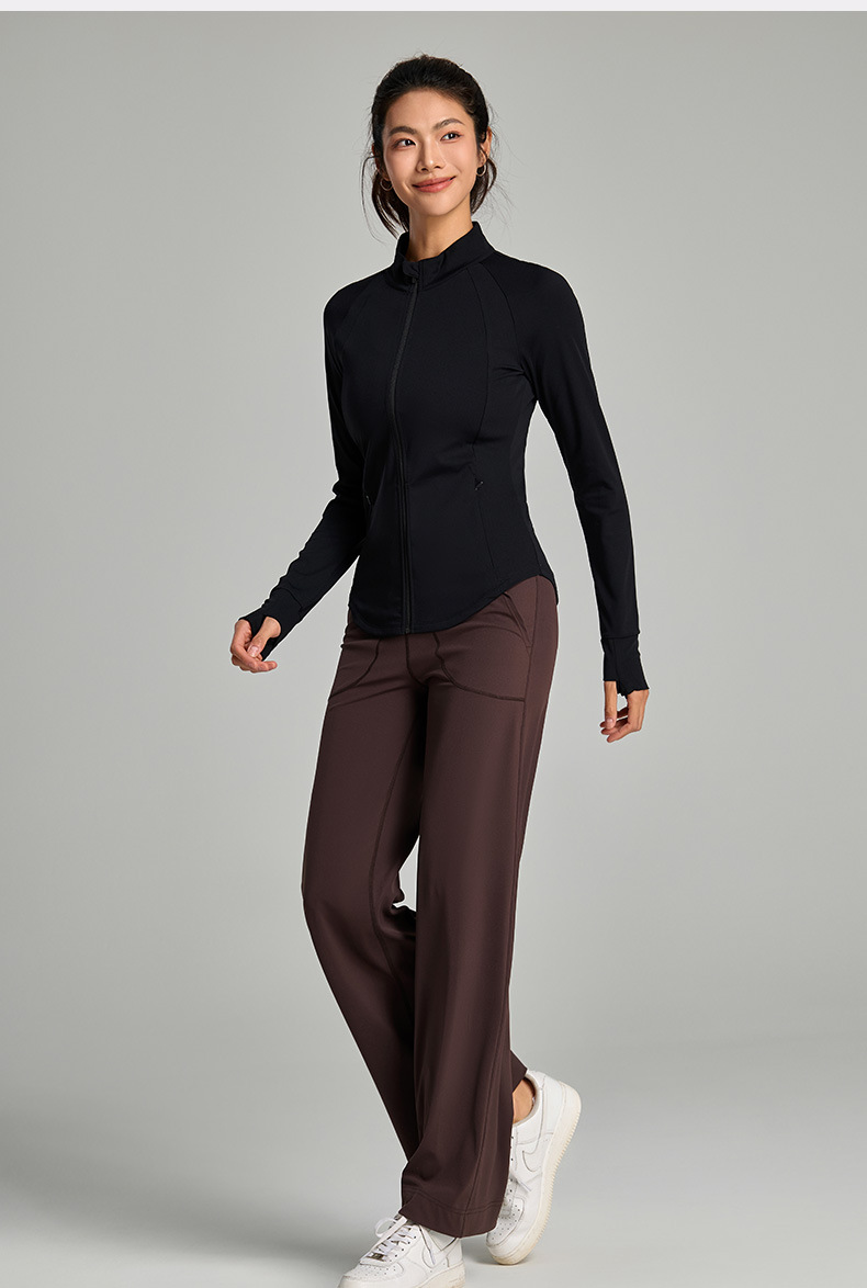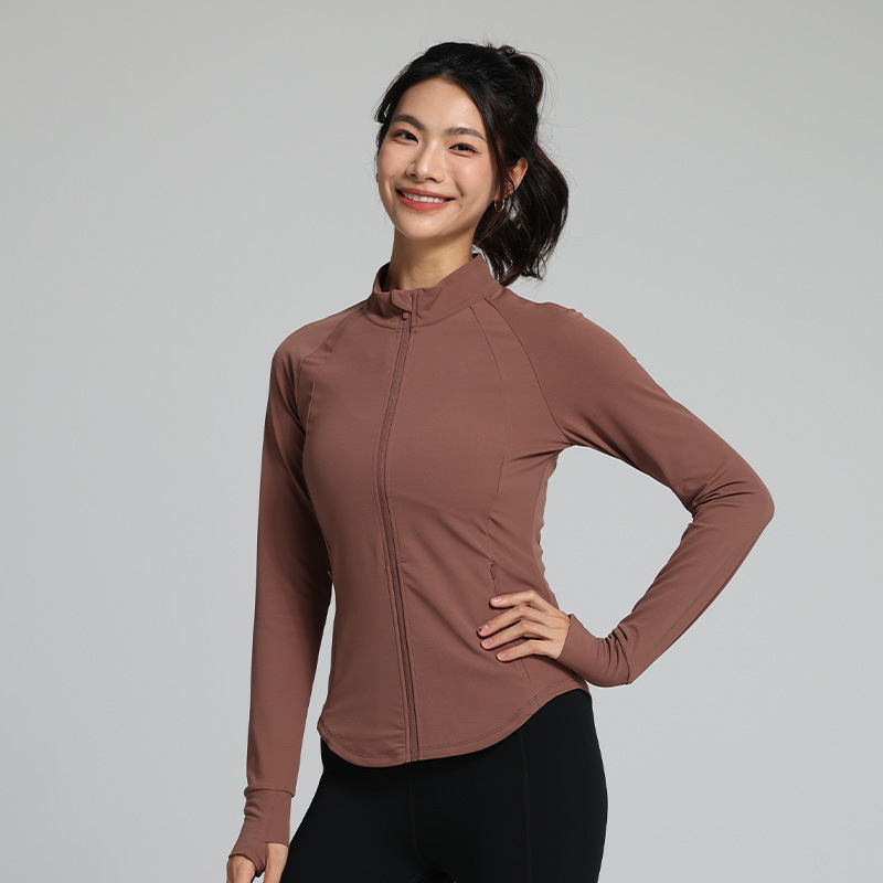 누드 타이트 커브 여성 스포츠 코트 가을 탄성 속건 아침 달리기 스탠드 칼라 피트니스웨어 새로운 요가웨어