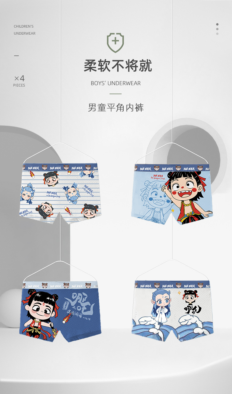 5-18세 소년을 위한 잘생긴 Nezha 4팩 속옷 15-60kg 중대형 어린이를 위한 편안하고 통기성이 뛰어난 사각팬티스토어 가기
