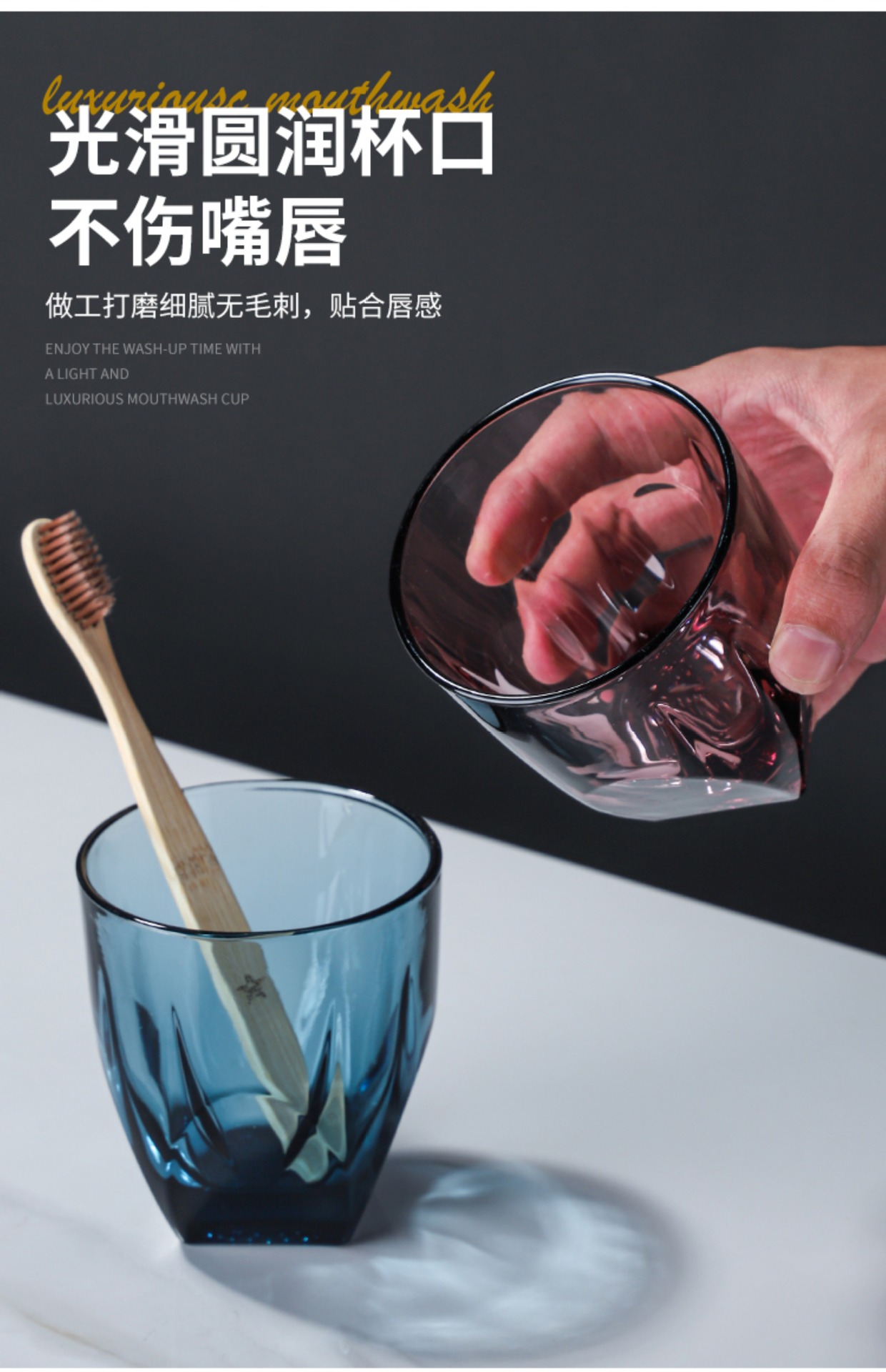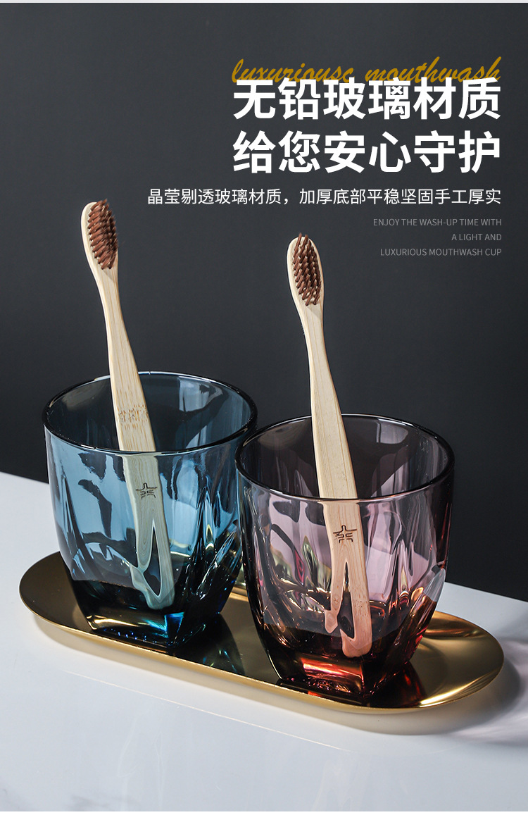 하모니 하우스 파란 호텔 구강 세정제 컵 프론트 데스크 꽃 차 컵 리봉 같은 스타일 커플 양치 컵 물 컵 유리 컵스토어 가기