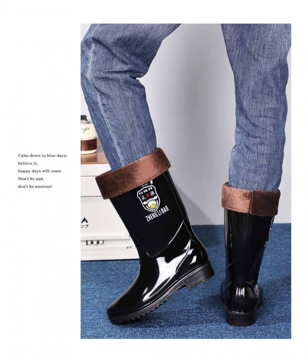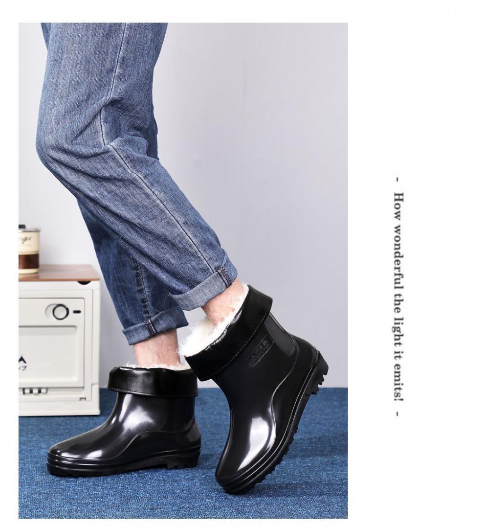 산 및 알칼리 방지 노동 보호 남성용 장화, 하이탑 짧은 장화, 방수, 미끄럼 방지, 두꺼운 벨벳 커버, 초고수화물, 주방 고무 장화스토어 가기