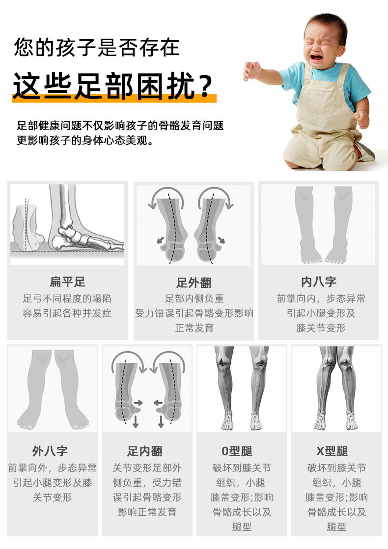 어린이 평발특수신발, 외반교정기, 내부스텝, XO형 다리교정 아치기능성신발