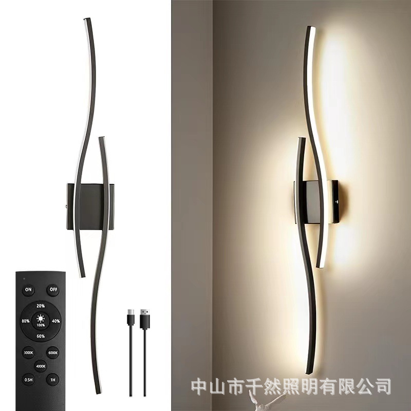 충전식 웨이브 벽 램프 펀치-프리 배선 터치 스위치 멀리 거실 배경 침실 자기 침실 램프스토어 가기