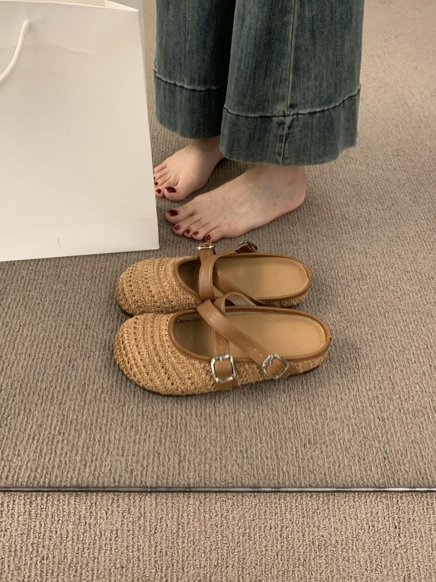 모리 스타일 예술적 스타일 짠 바오 투 하프 슬리퍼 여성 여름 의상 슬립 온 두꺼운 밑창 크로스 스트랩 메리 제인 버켄 신발스토어 가기