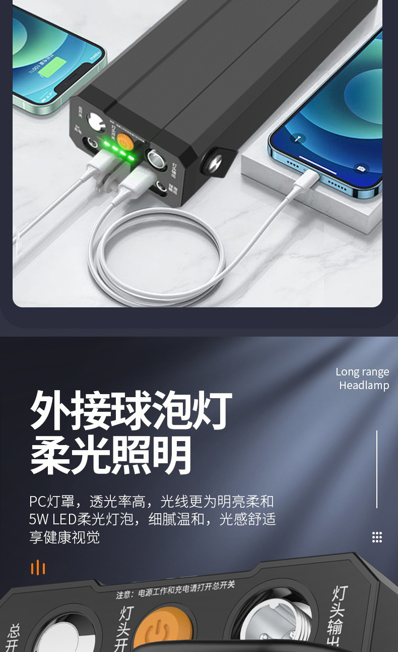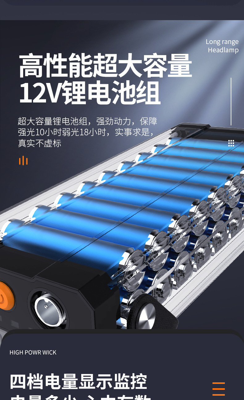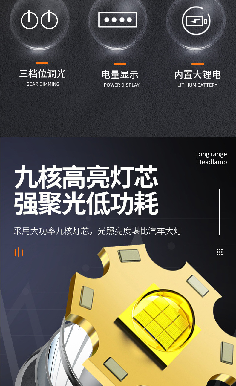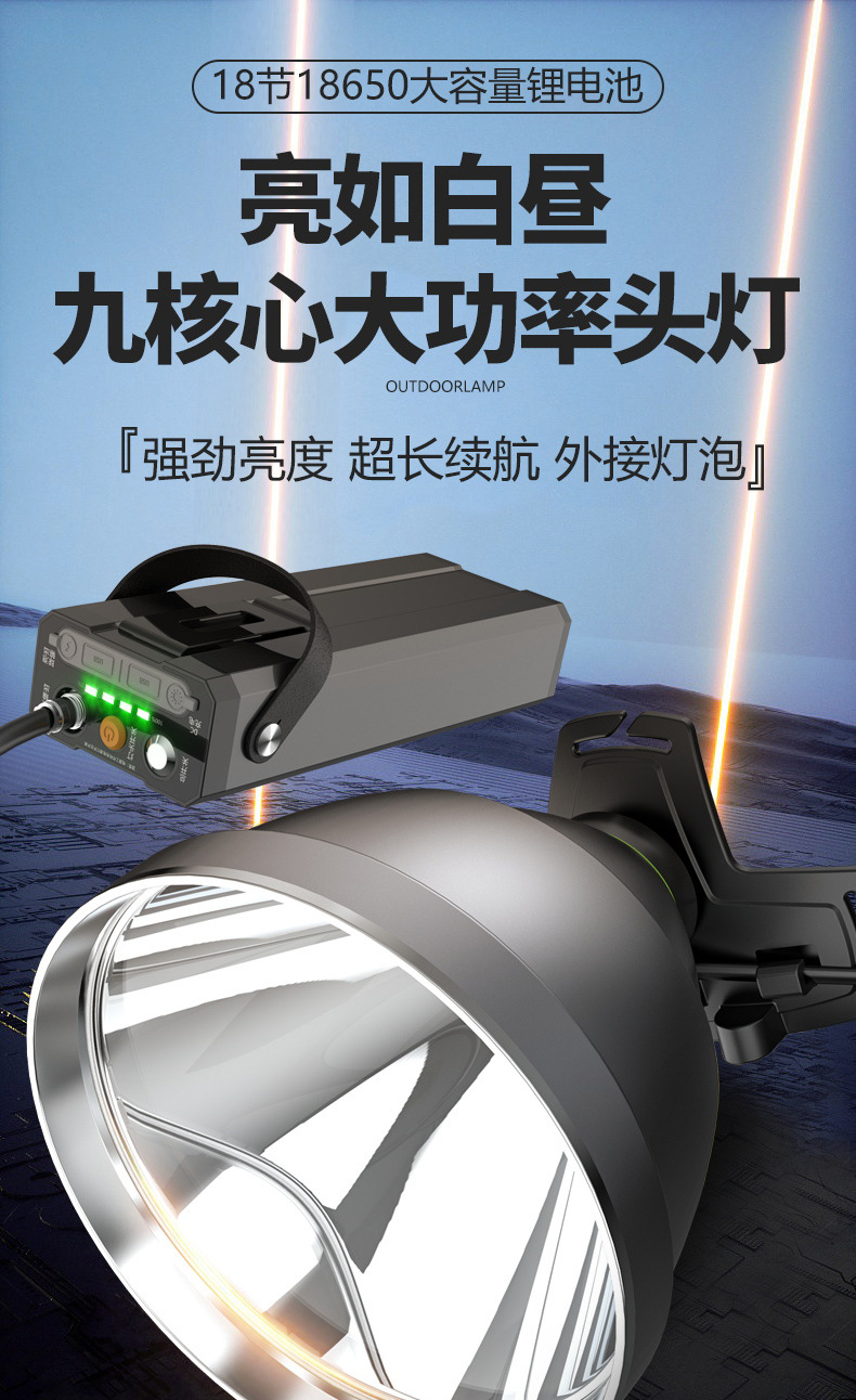 새로운 허리 장착형 분할형 강력한 헤드라이트, 매우 밝고 고출력 9코어 코어 야외 특수 광부용 램프, 매우 긴 배터리 수명