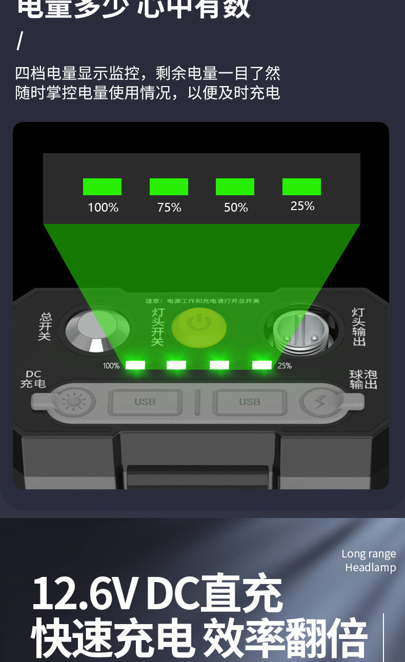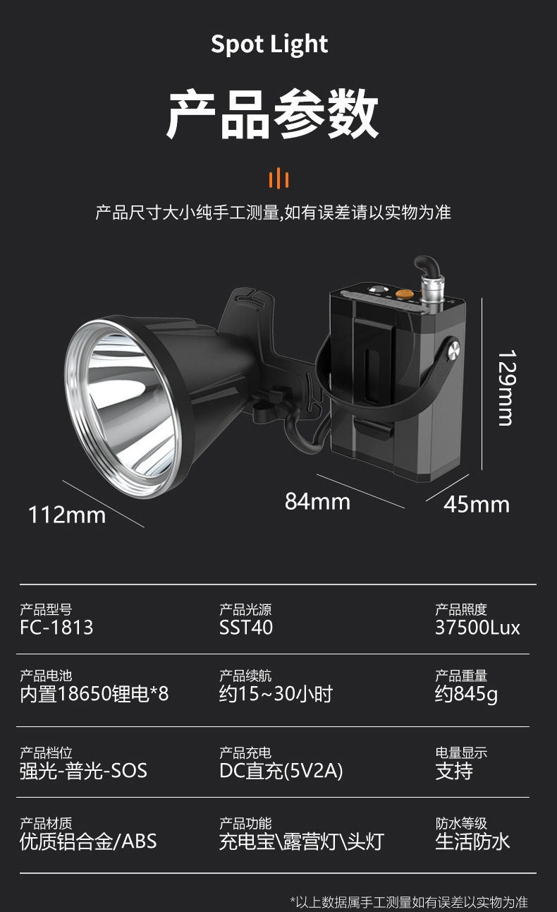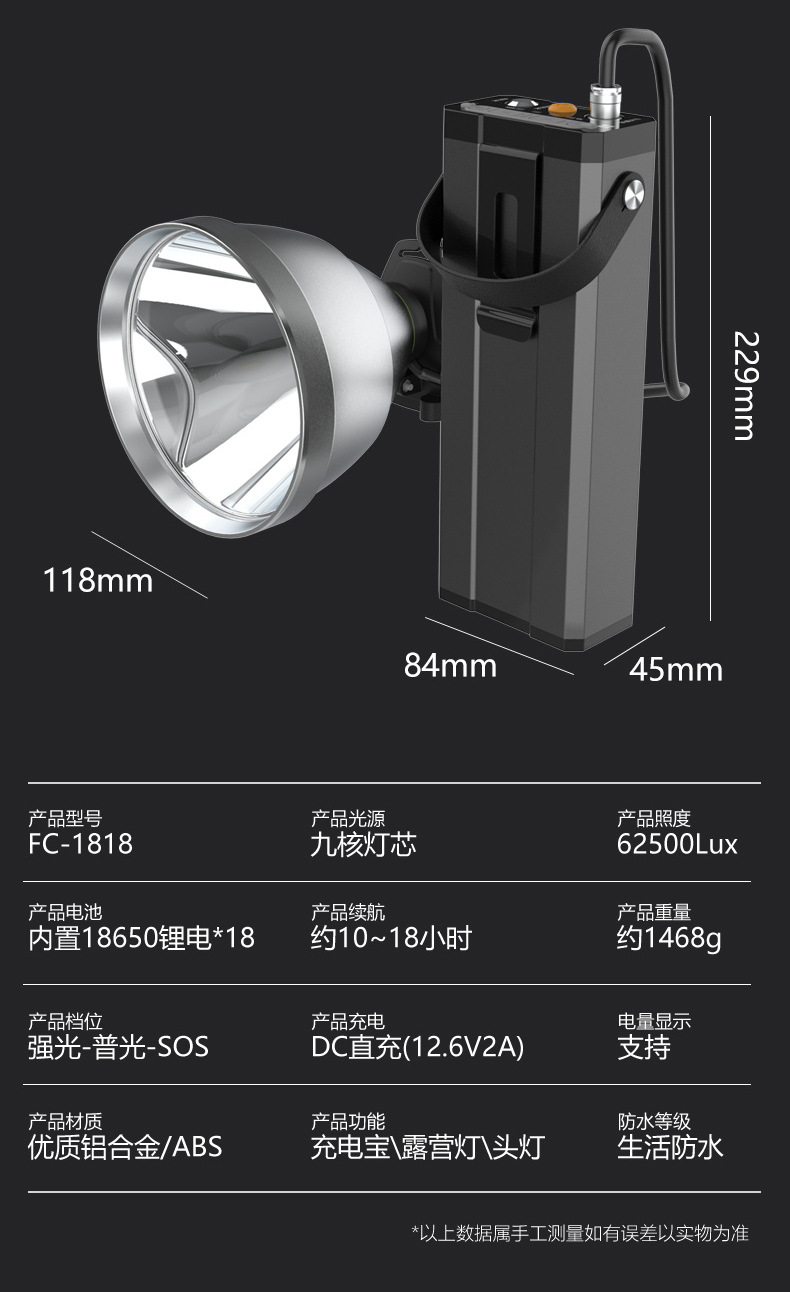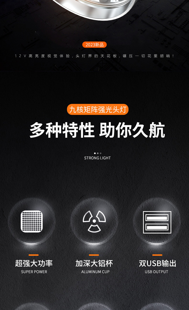 새로운 허리 장착형 분할형 강력한 헤드라이트, 매우 밝고 고출력 9코어 코어 야외 특수 광부용 램프, 매우 긴 배터리 수명