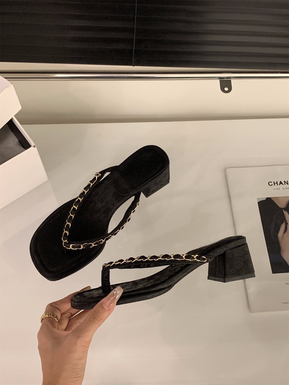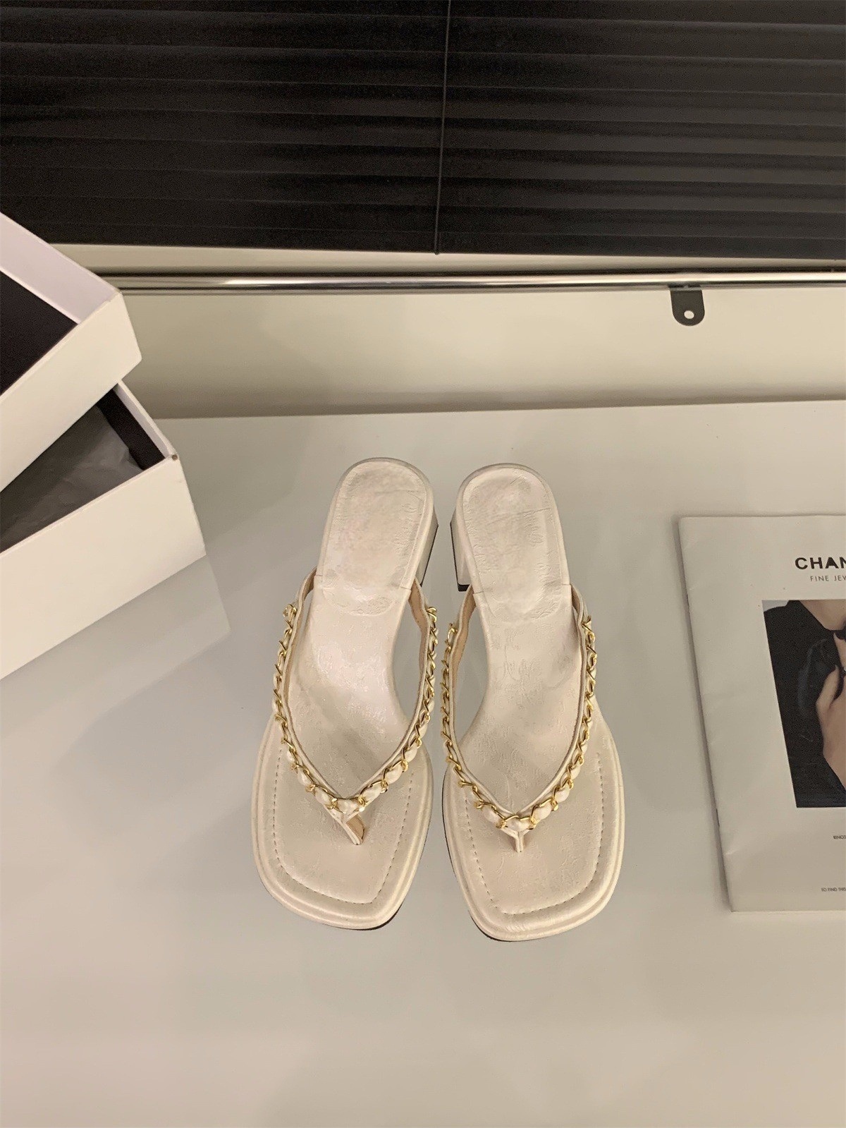 프렌치 미드하이힐 슬리퍼, 요정신발, 2025 신상 여름 스타일 샌들스토어 가기