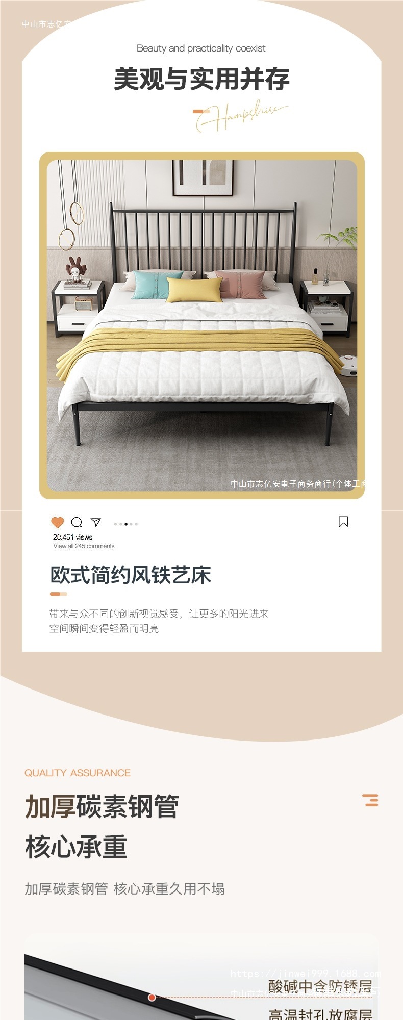 경제적인 가정용 철제 침대 더블 침대 현대적인 간단한 행 뼈대 침실 철 침대 싱글 침대 프레임 두껍고 두꺼운스토어 가기
