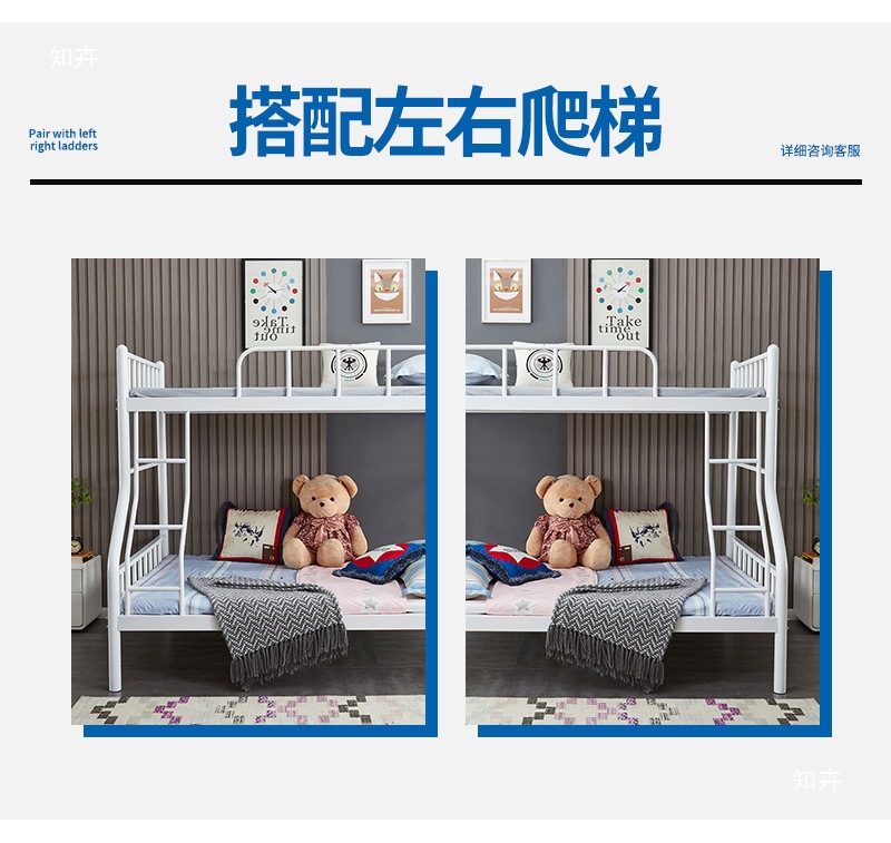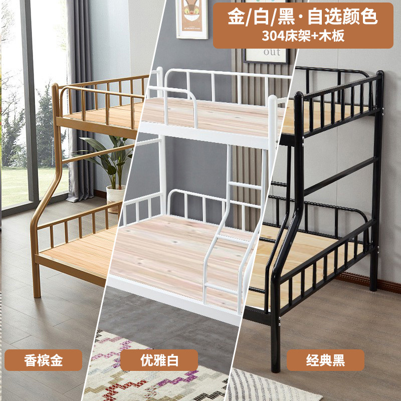 스테인레스 스틸 이층 침대, 흰색 황금색 304 두꺼운 어린이 가정용 철제 침대 높낮이 이층 침대스토어 가기