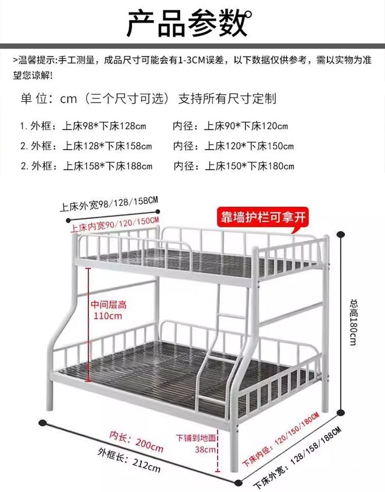 • [비고 색상] 304 3개의 가드레일 스테인레스 스틸 침대 프레임 + 나무 침대 보드