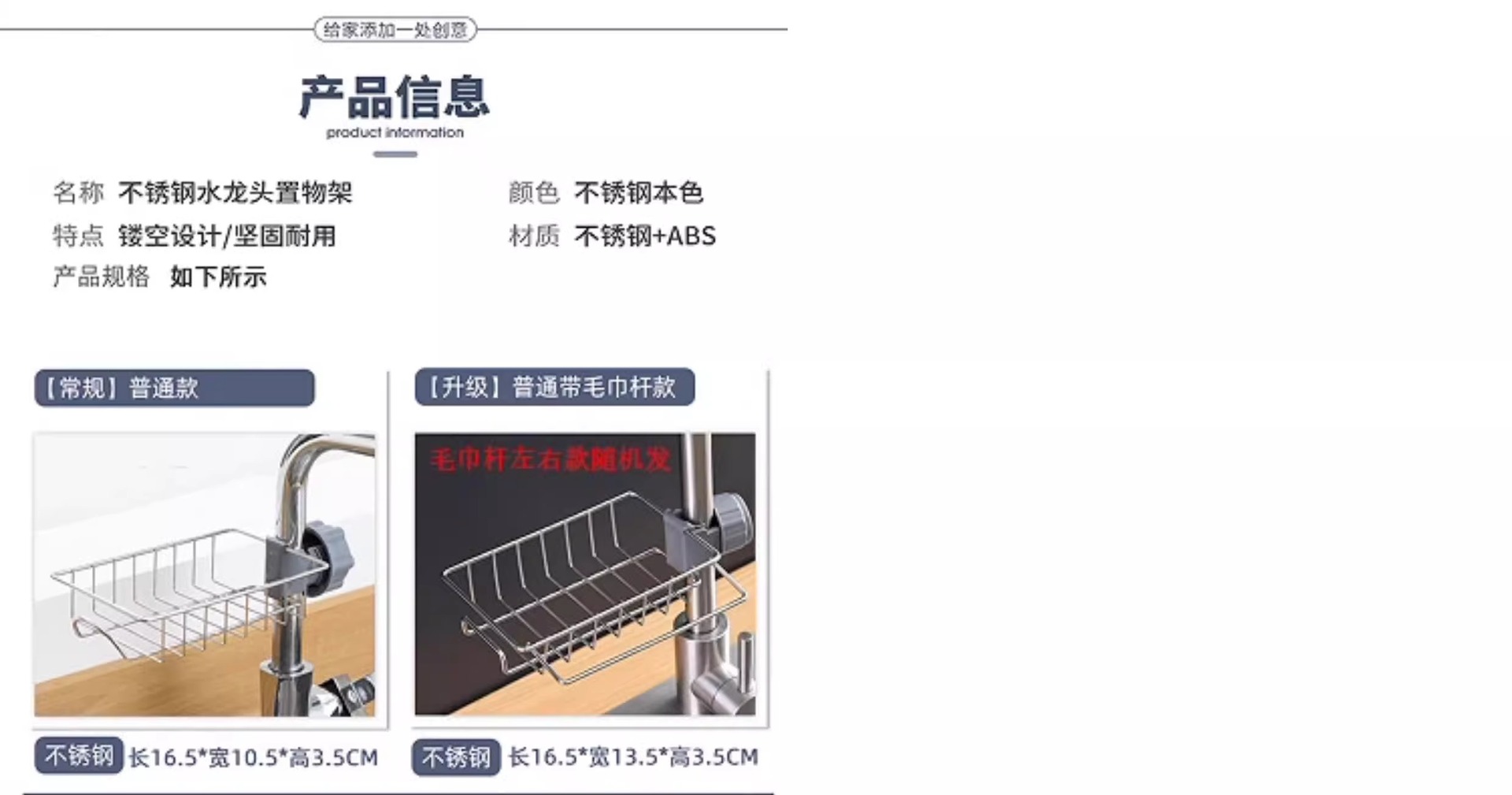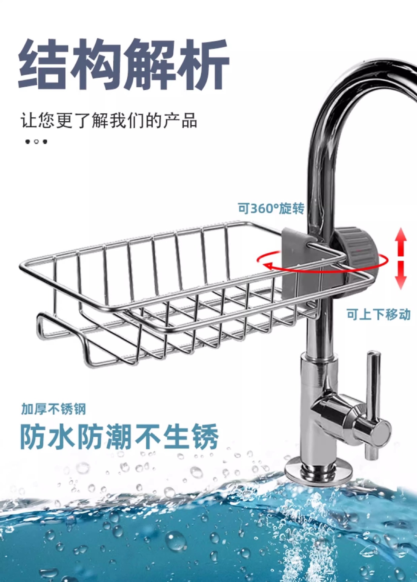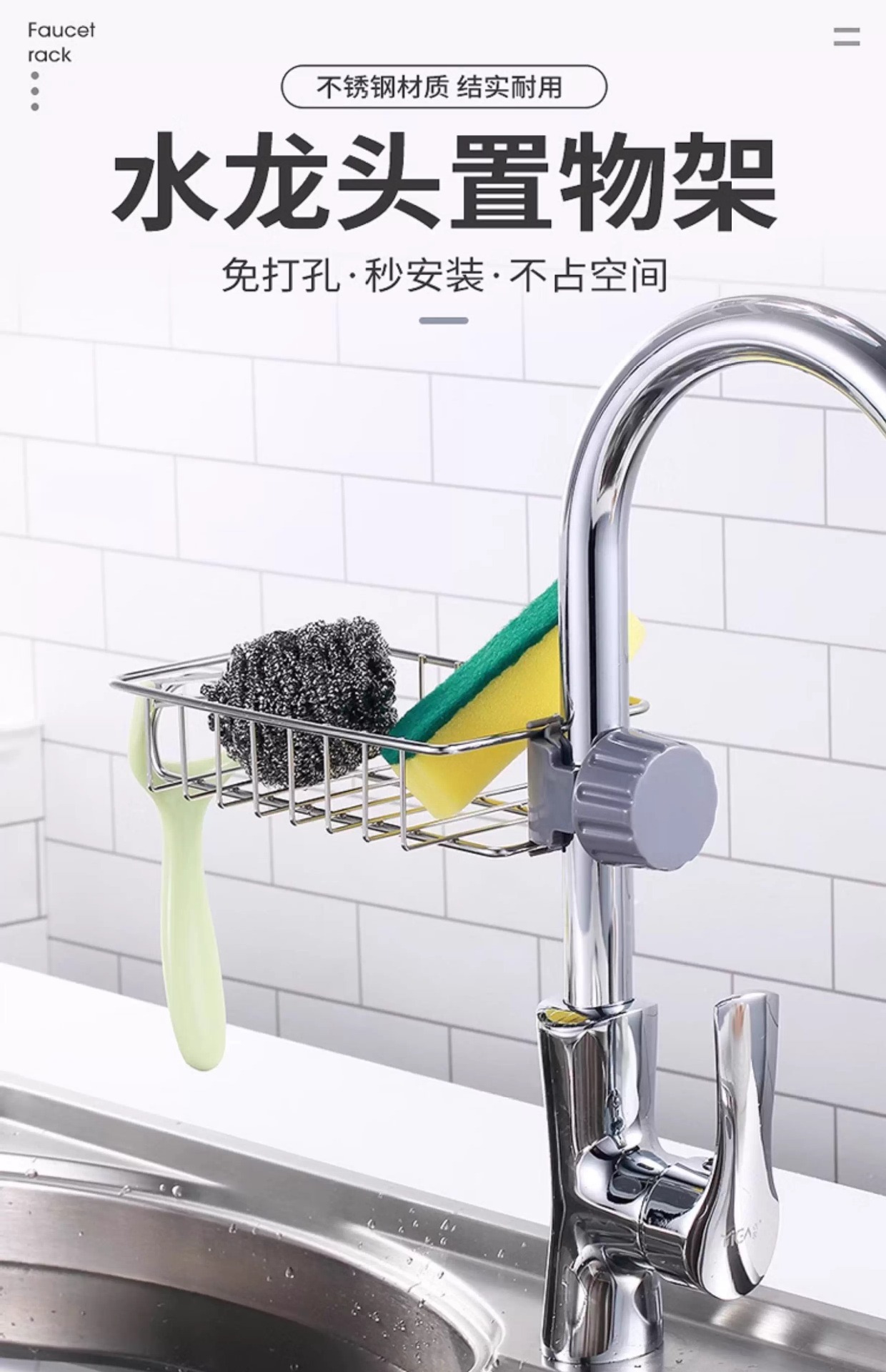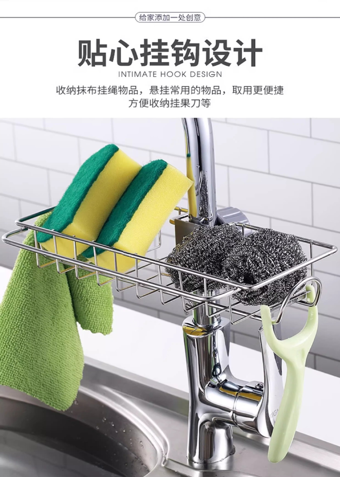 수도꼭지 보관함 주방 스테인레스 스틸 싱크 보관함 가정용 스폰지 걸레 식기 세척 천 배수 랙 걸이 바구니스토어 가기
