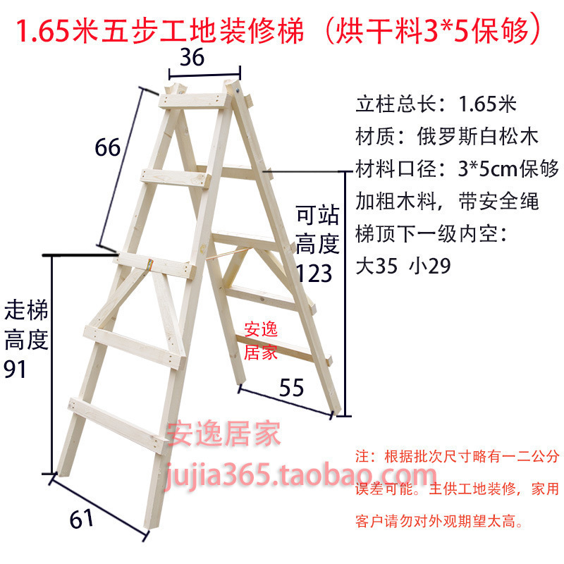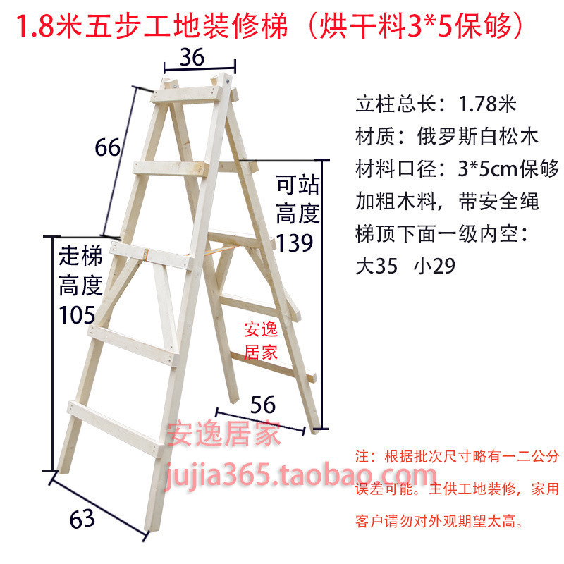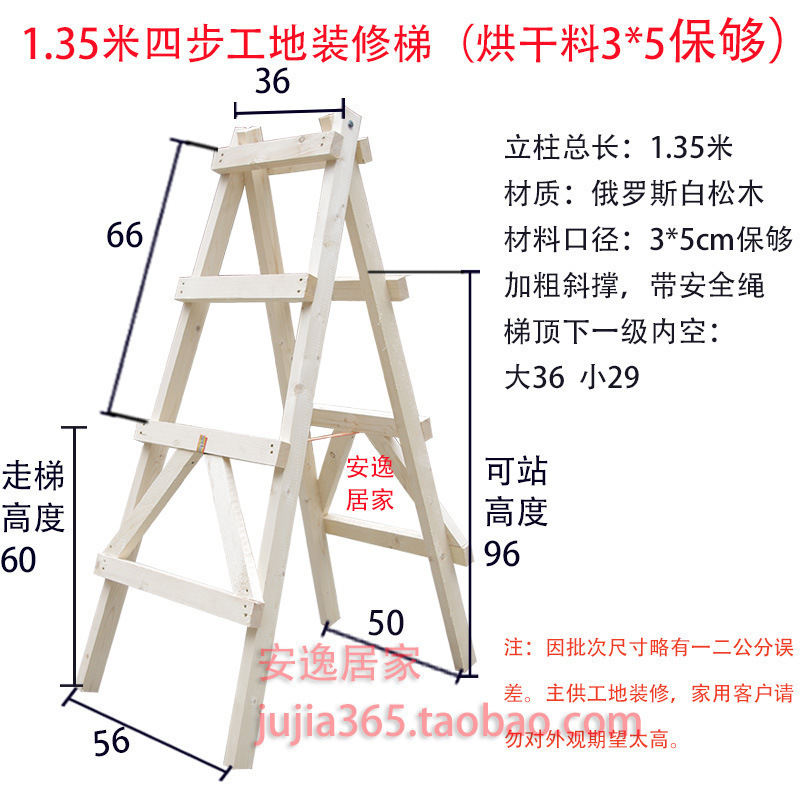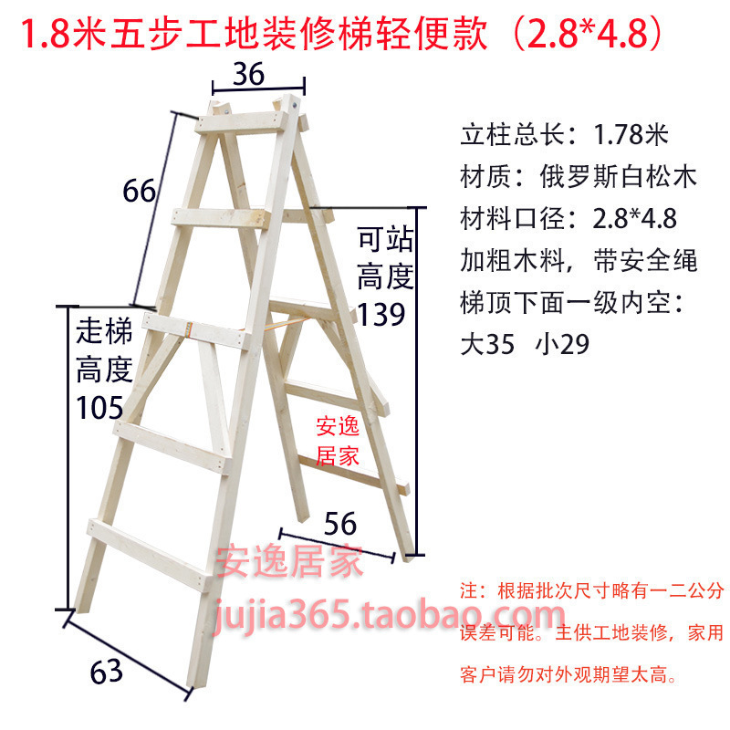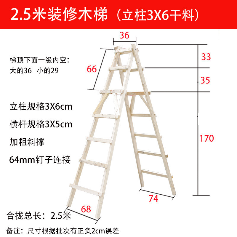 소나무 양면 사다리, 간단한 장식 목재, 원목 등반 헤링본 사다리, 건설 현장용 엔지니어링 수전 목재 사다리스토어 가기