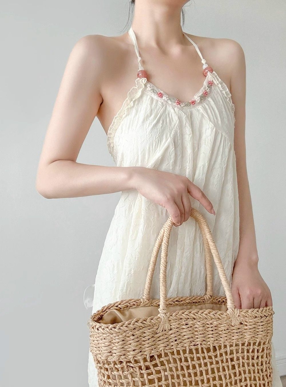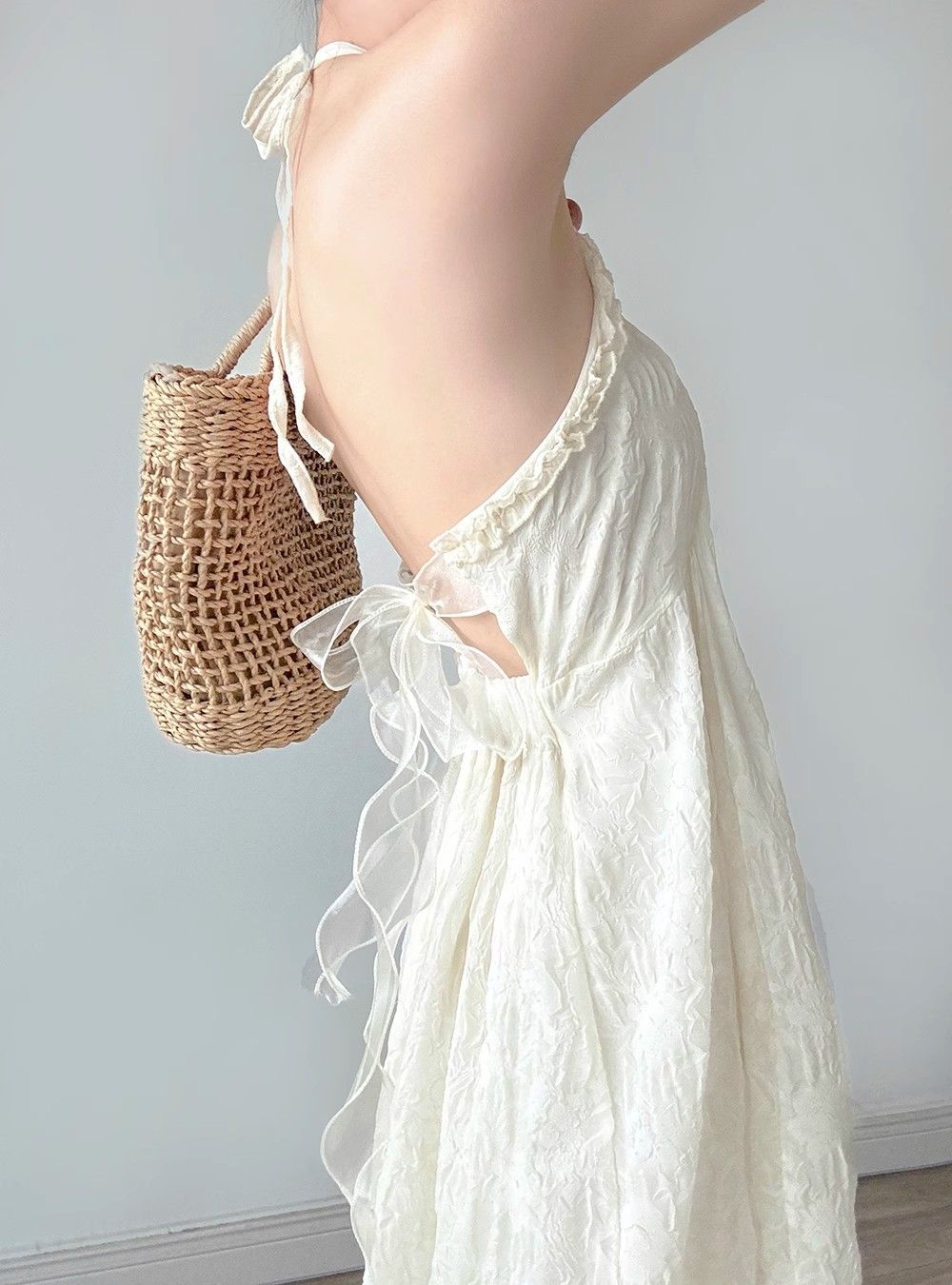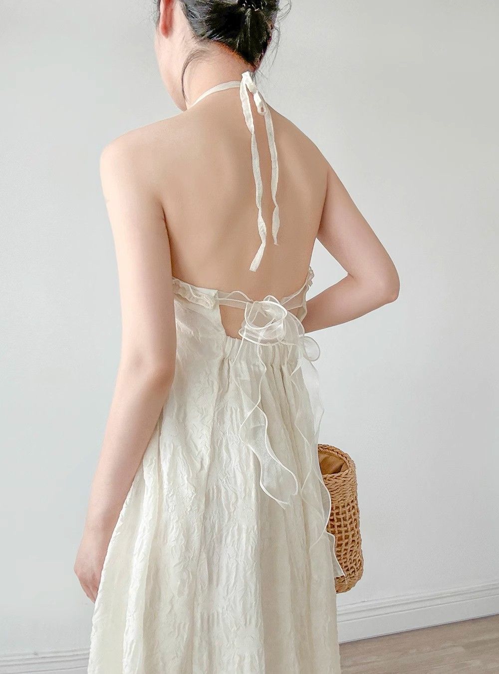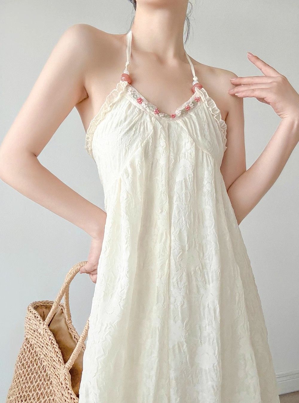 순수한 욕망 달콤한 백리스 홀터넥 서스펜더 드레스 여성 여름 새로운 슈퍼 요정 프랑스 해변 휴가 쉬폰 스커트스토어 가기