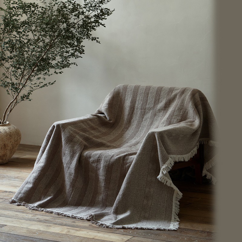 • [면과 린넨의 강한 선염 자카드 담요] Yi Yuka