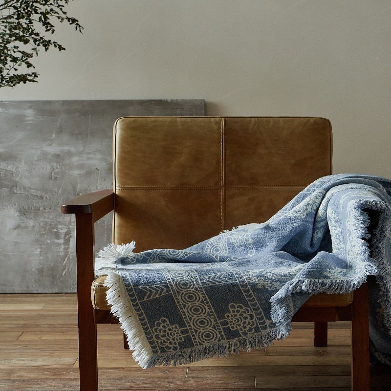 • [면과 린넨의 강한 선염 자카드 담요] 센만